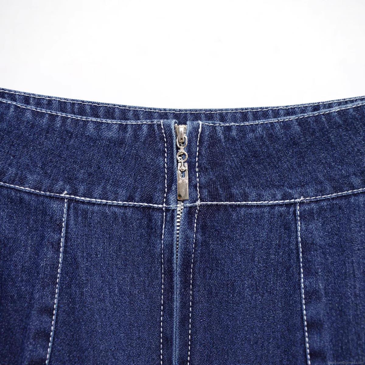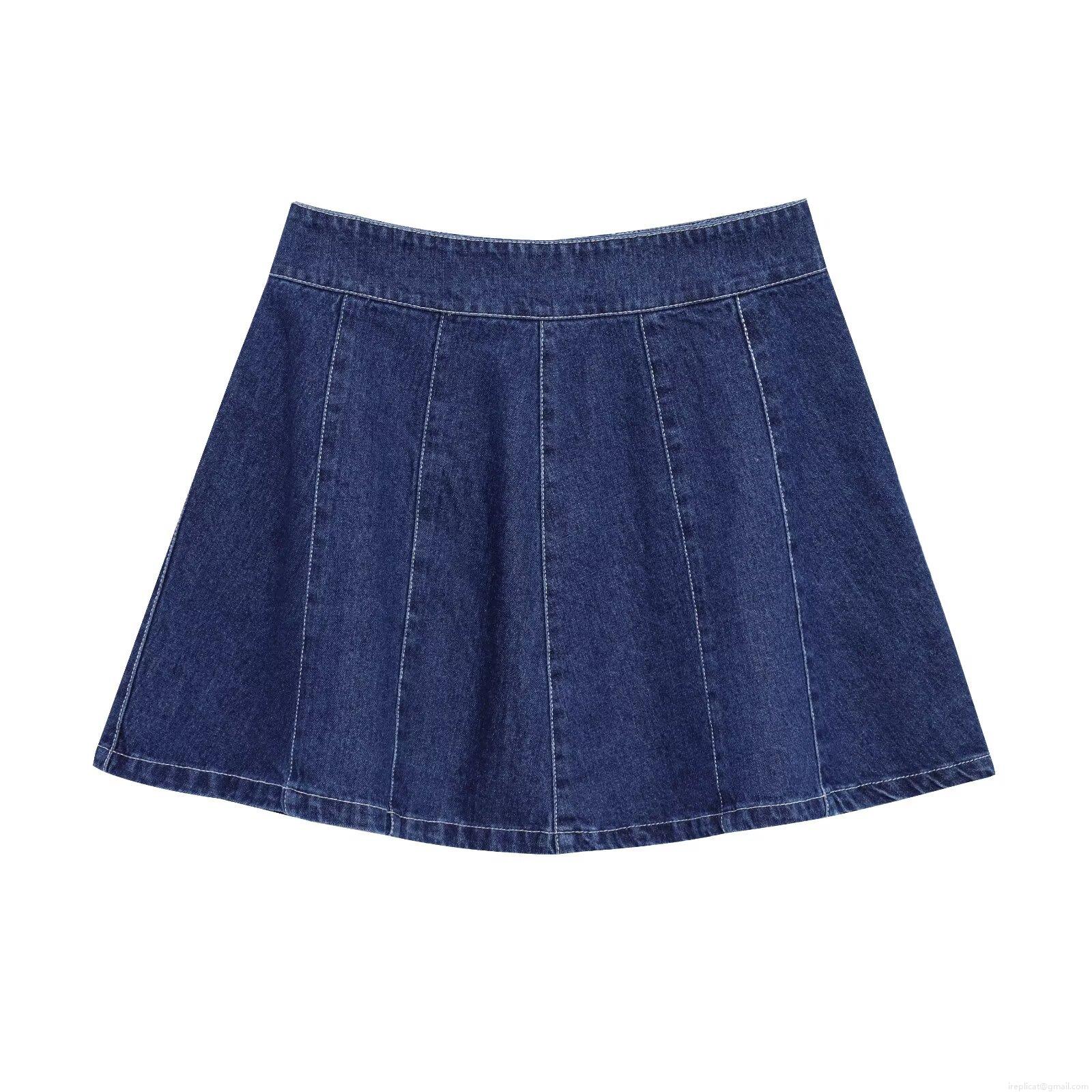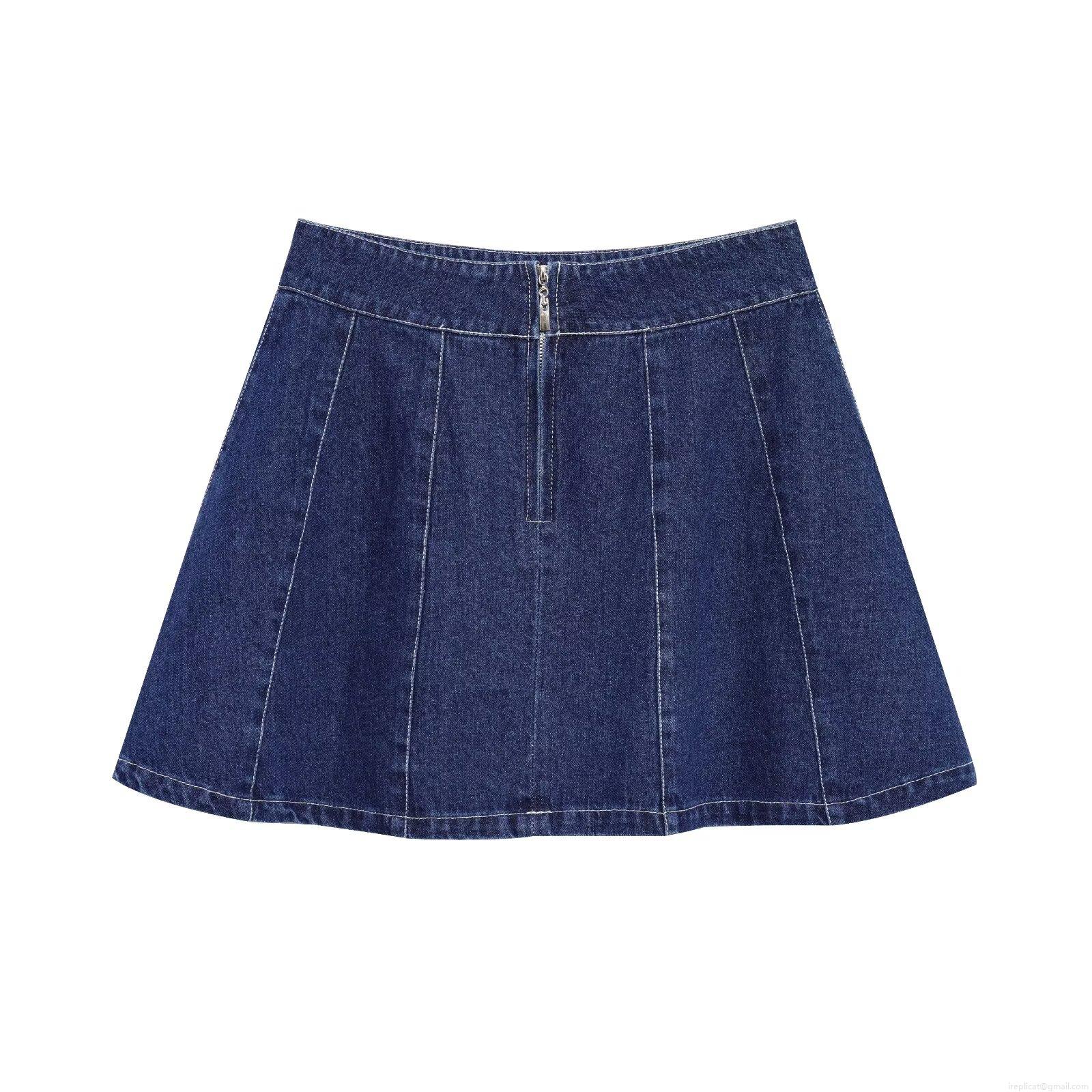 • Women's Denim Mini Skirt High Waist A-Line Contrast Stitching Zipper Front Jean Skirt Streetwear Casual Dark Blue Polyester Blend Bottoms for Spring Summer