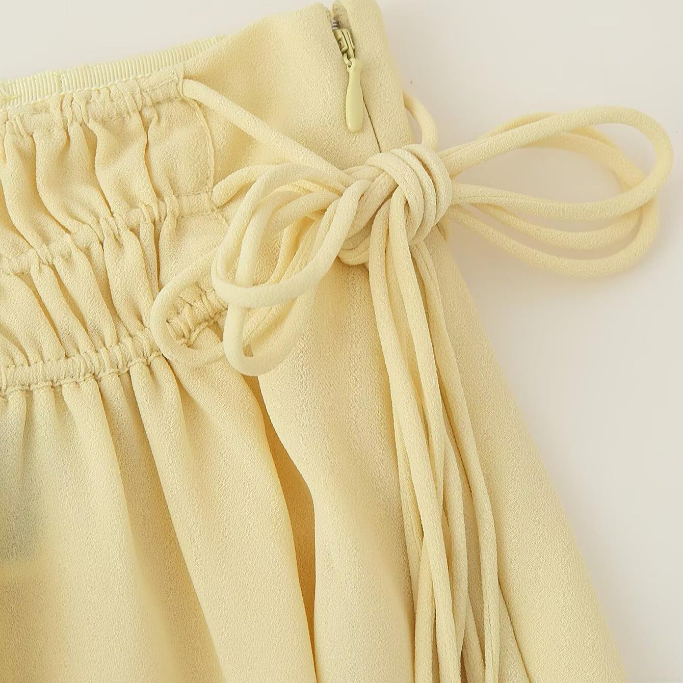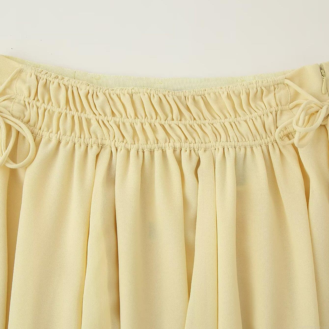 Solid Color, Pleats, Ruffles, Drawstring, Lace, Irregular Hem