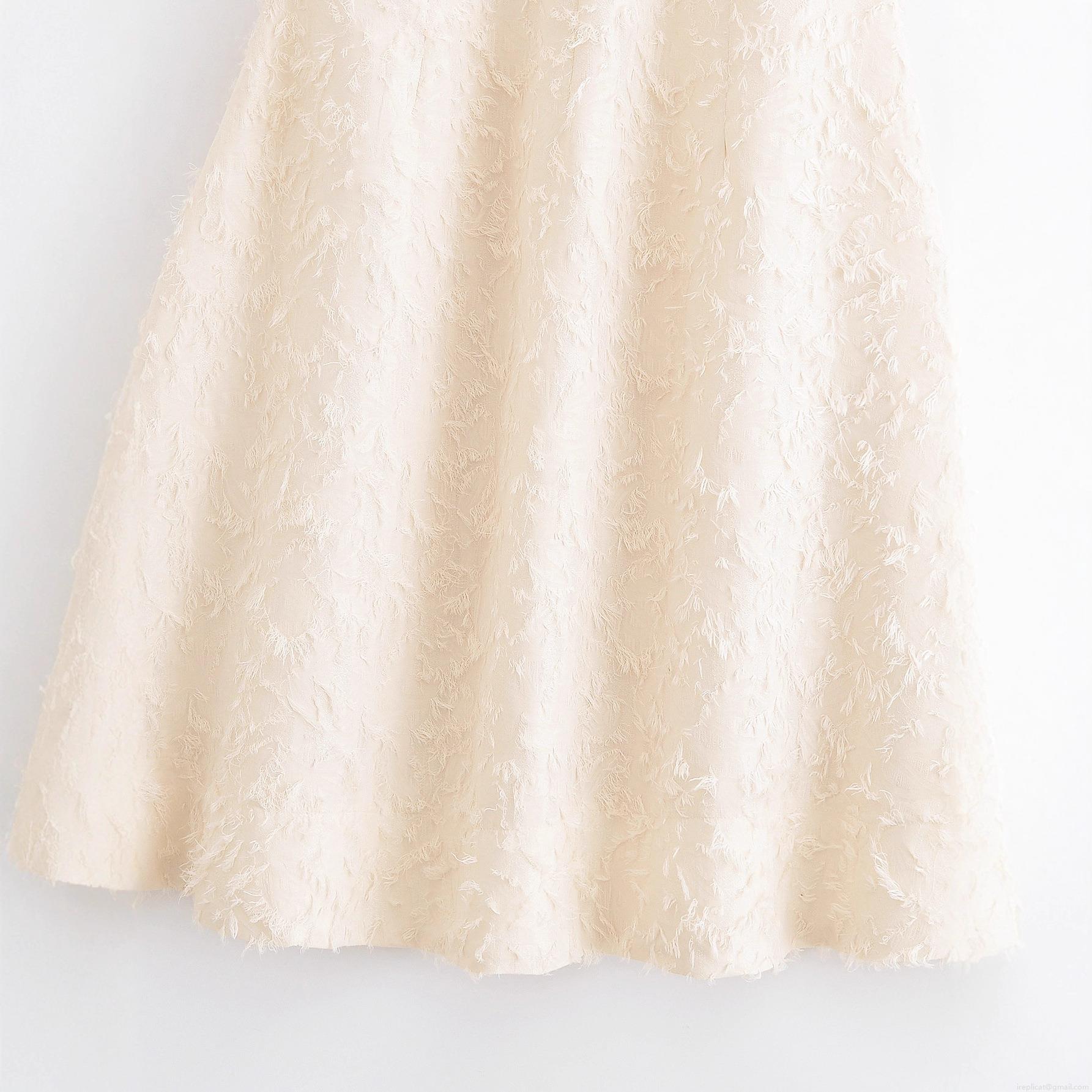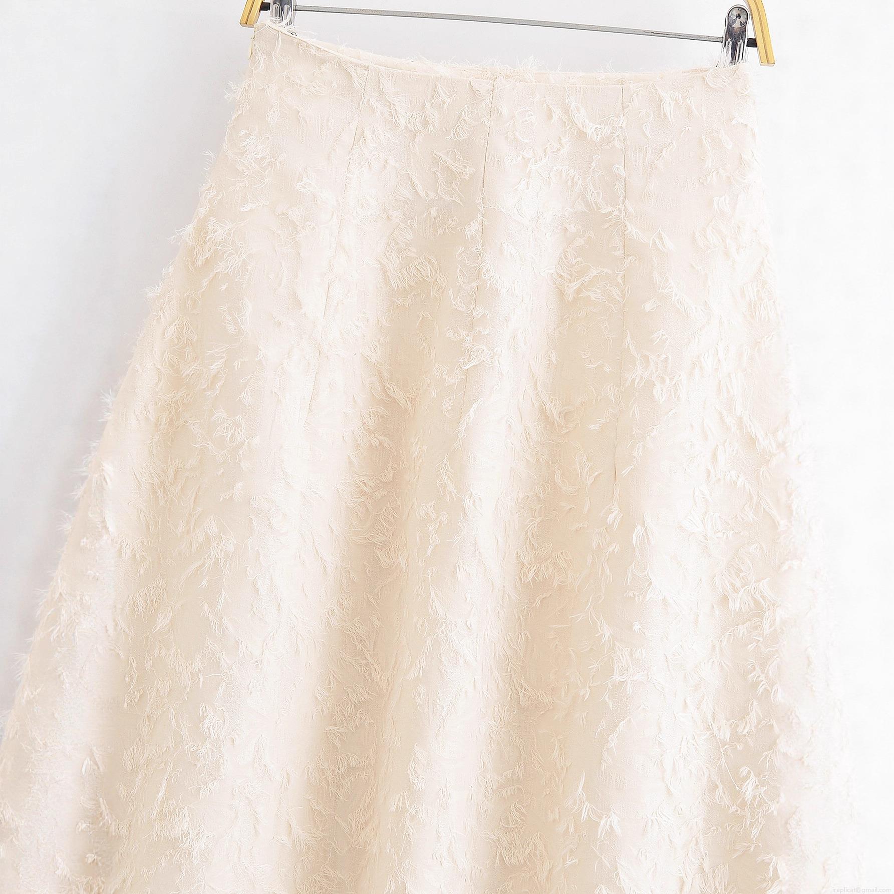 • Women's Elegant Cream White A-Line Midi Skirt 100% Polyester With Feather Tassel Texture High Waist Streetwear Skirt For Party Wedding Casual Fall