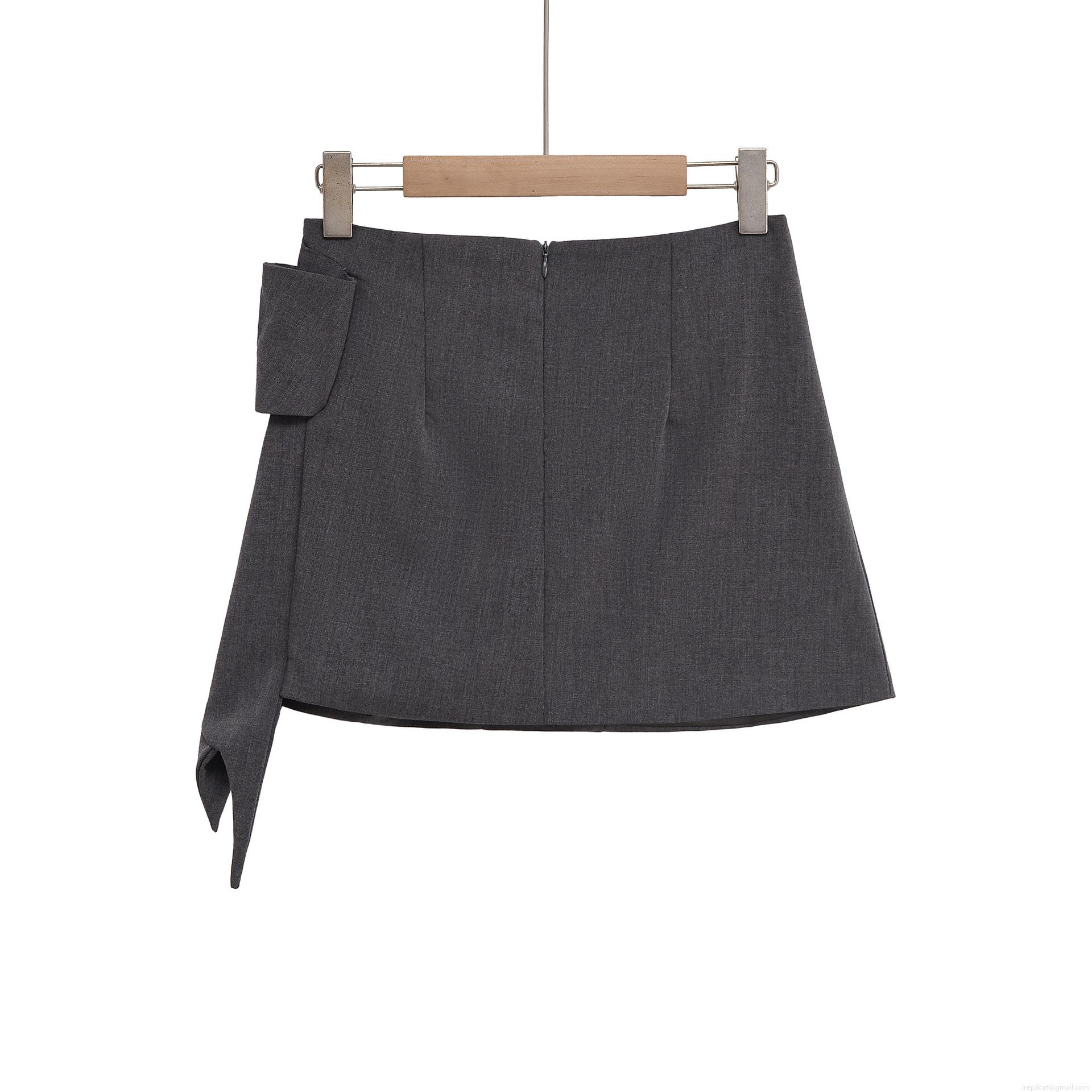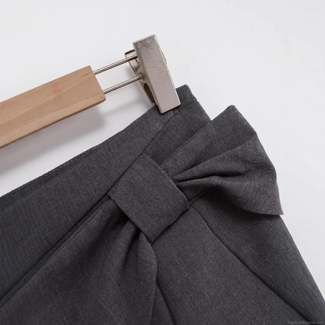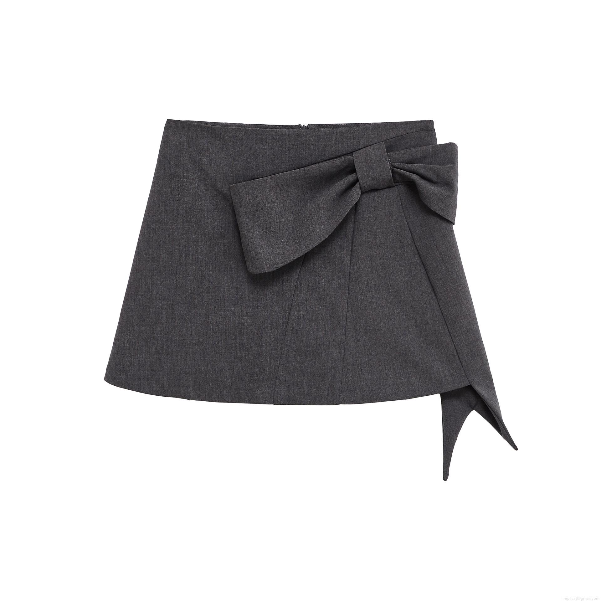• Women's Elegant Dark Grey A-Line Mini Skirt With Large Bow Decoration High Waist Short Skirt Professional Chic Streetwear Skirt For Women