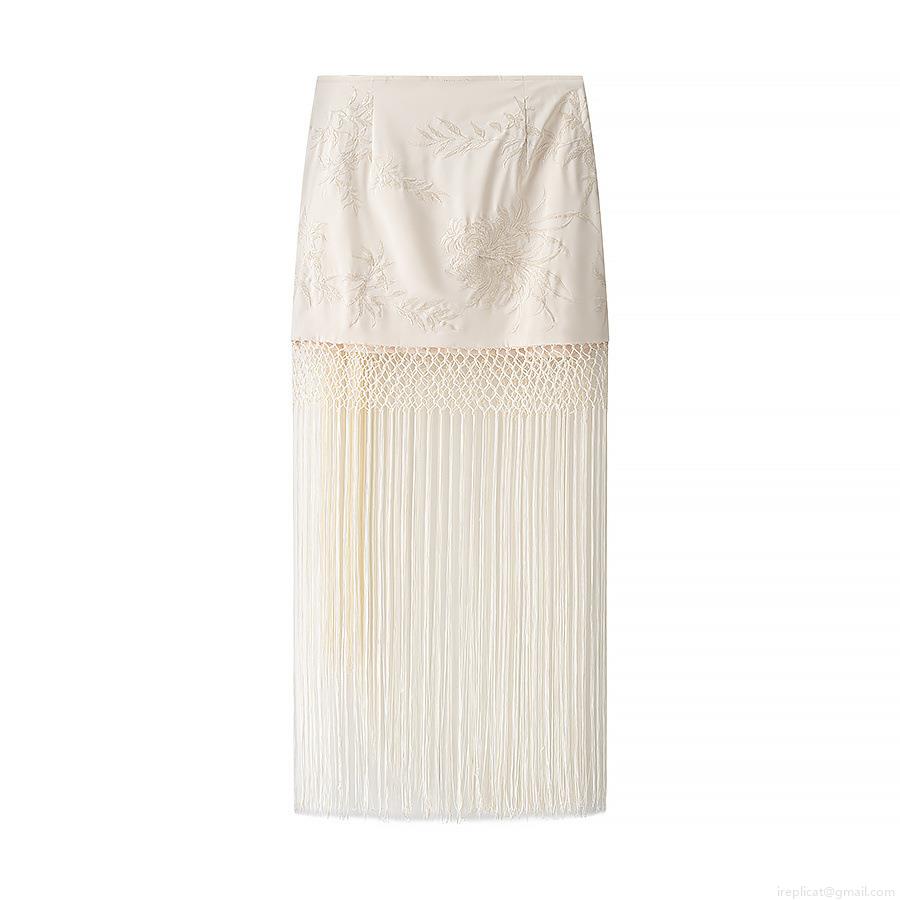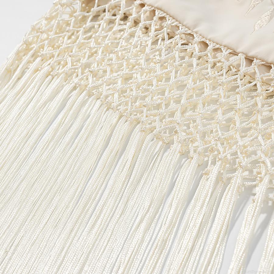 • Women's Elegant Floral Embroidered Mini Wrap Skirt With Long Tassels Classic High Waist Hip Skirt Retro Summer Vacation Beach Bottoms