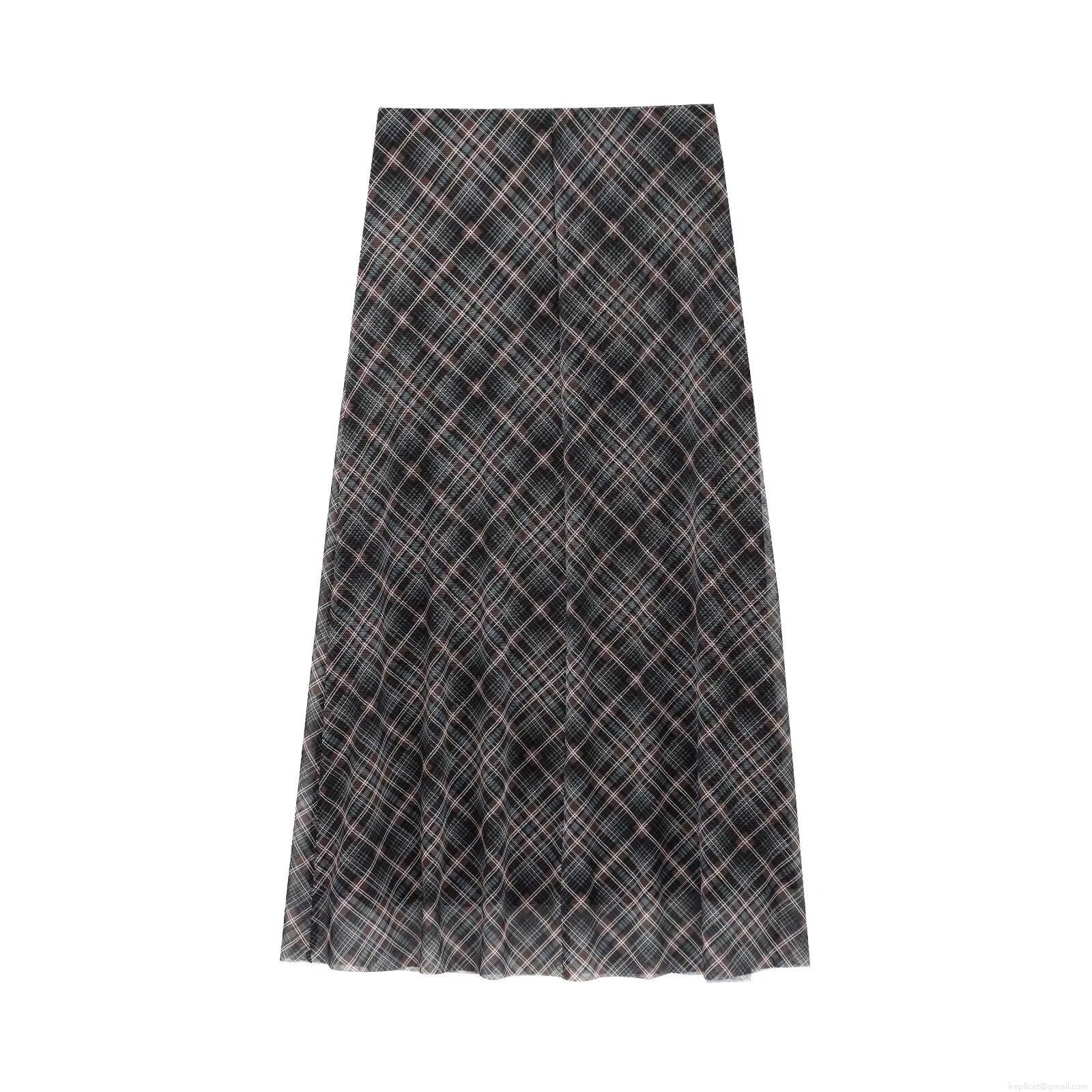 Women's Elegant Grey Plaid A-Line Mesh Skirt High Waist Long Maxi Skirt Vintage Streetwear Casual Versatile Bottoms for Women