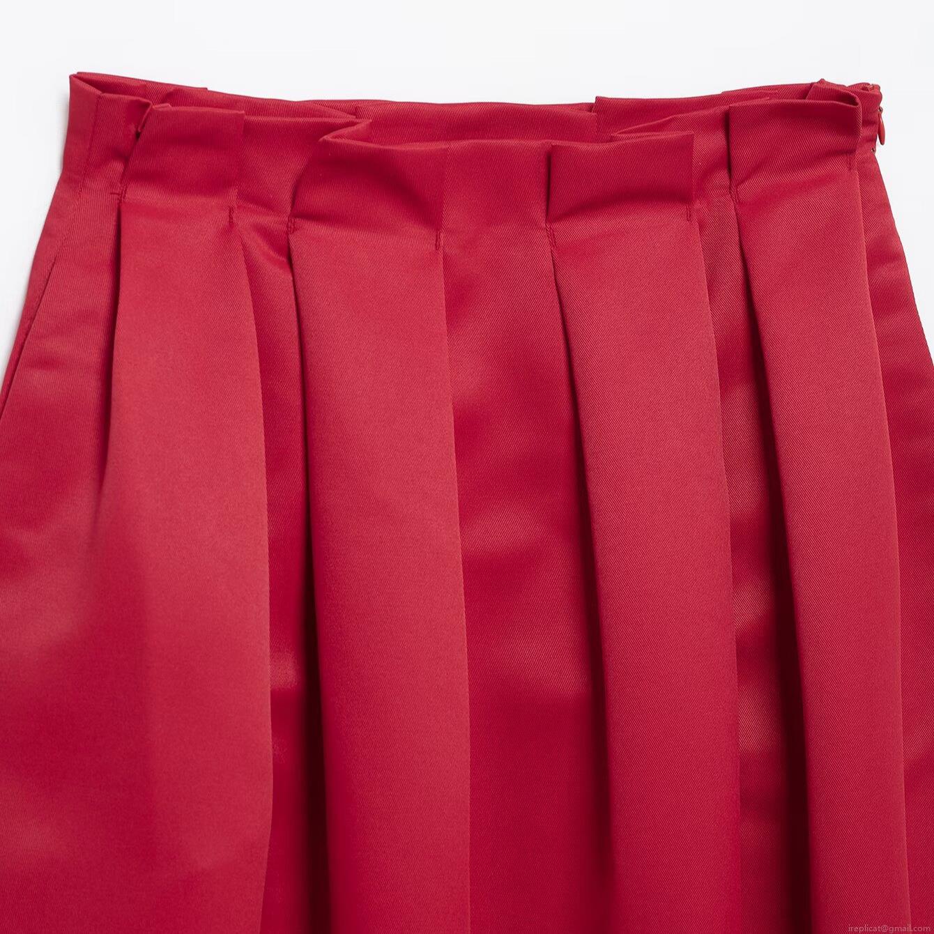 Solid Color, Pleats, High-waisted, A-shaped Arrangement