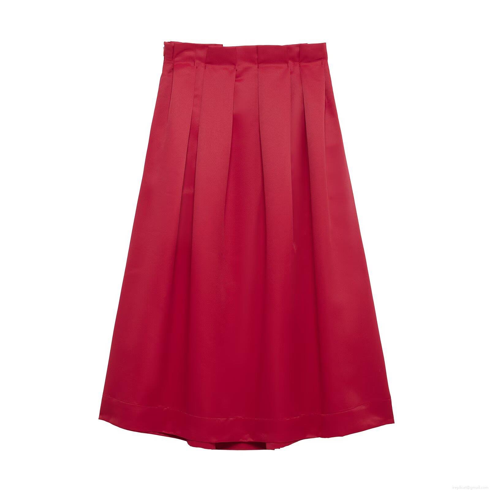 • Women's Elegant High Waist A-Line Pleated Midi Skirt 100% Polyester Solid Color Satin Luster Casual Office Party Skirt For Ladies
