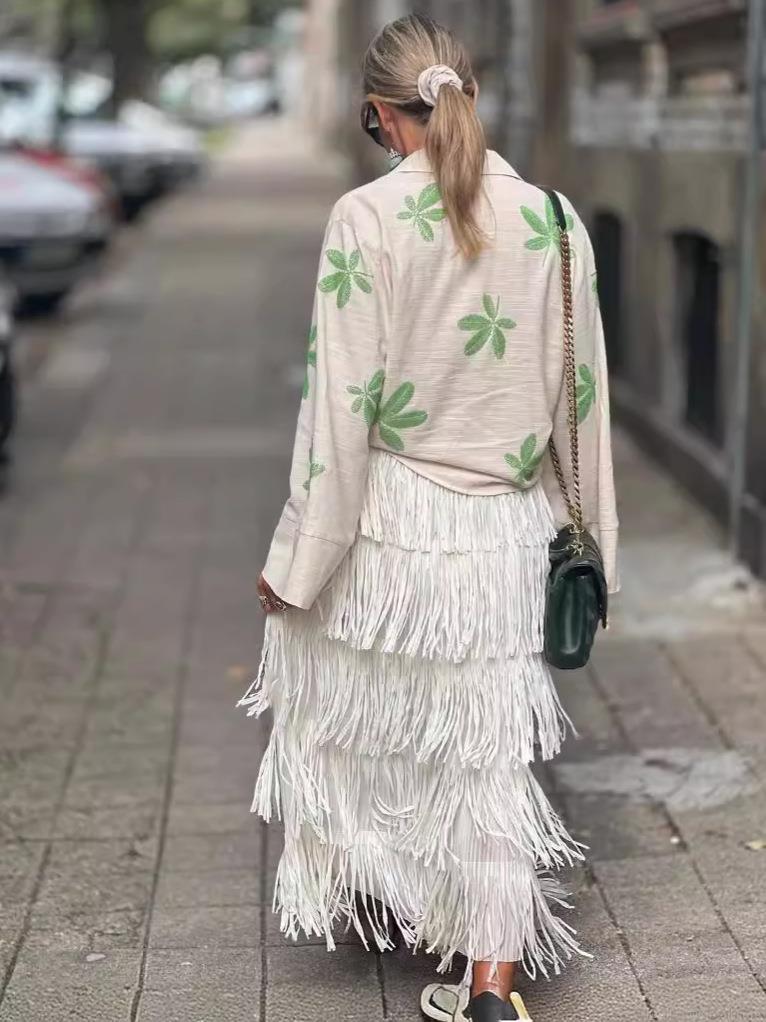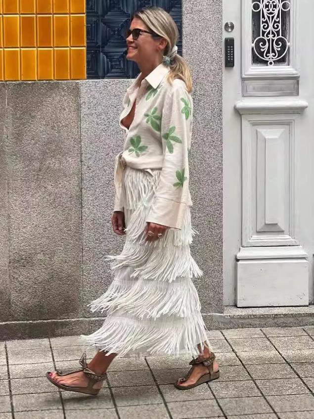 • Women's Elegant High Waist Multi-Layer Fringe Tassel Midi Skirt Bohemian Tiered A-Line Skirt For Streetwear Party Vacation