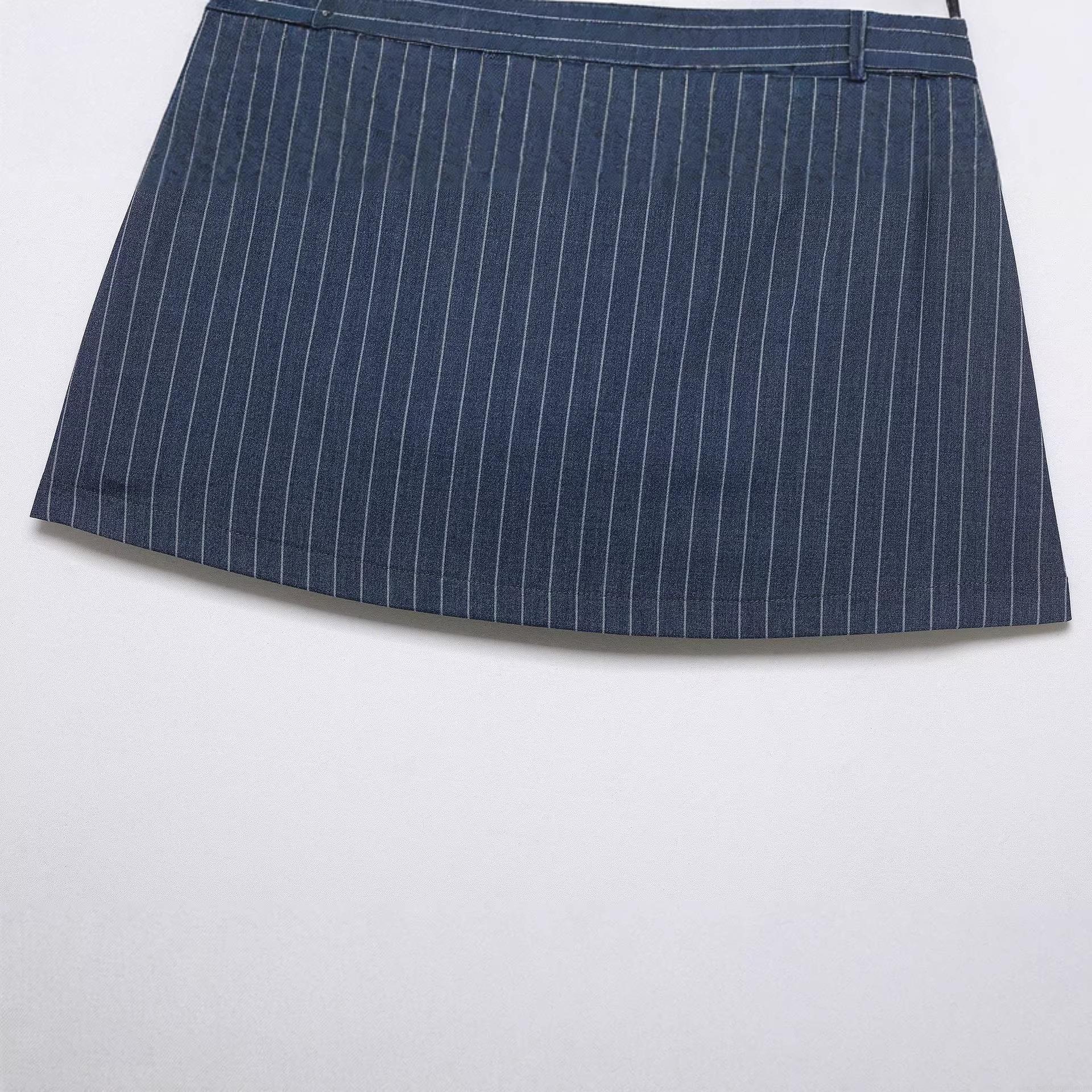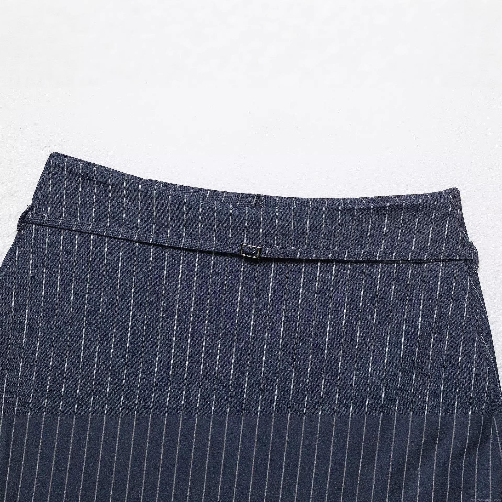 • Women's Elegant High Waist Pinstripe Mini Skirt With Belt Navy Blue Polyester Straight Short Skirt For Daily Dating Streetwear