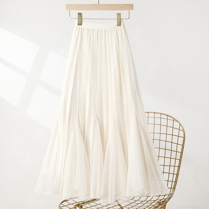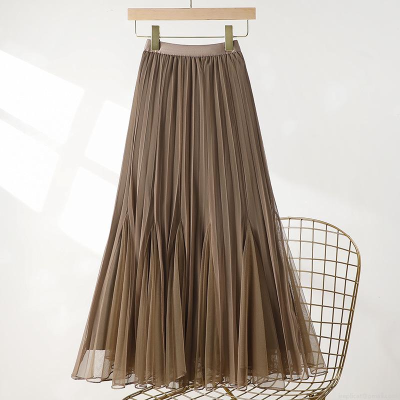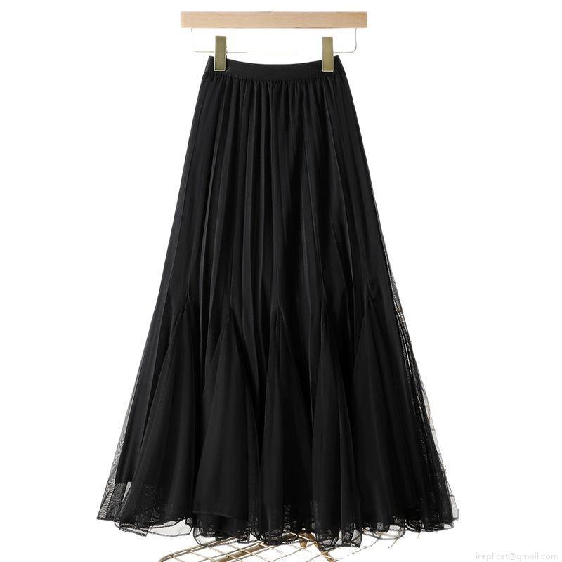 • Women's Elegant High Waist Pleated Mesh Skirt Double Sided Wearable A-Line Long Tulle Skirt for Daily Party Dating Sweet Tutu Skirt