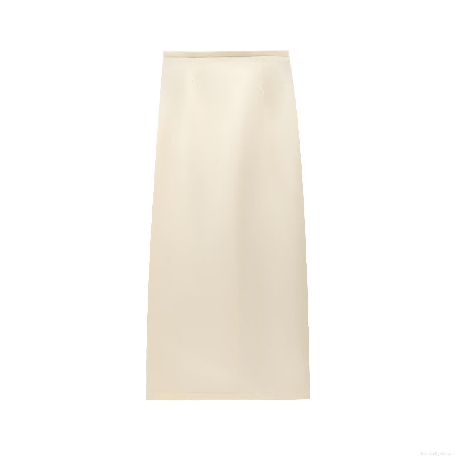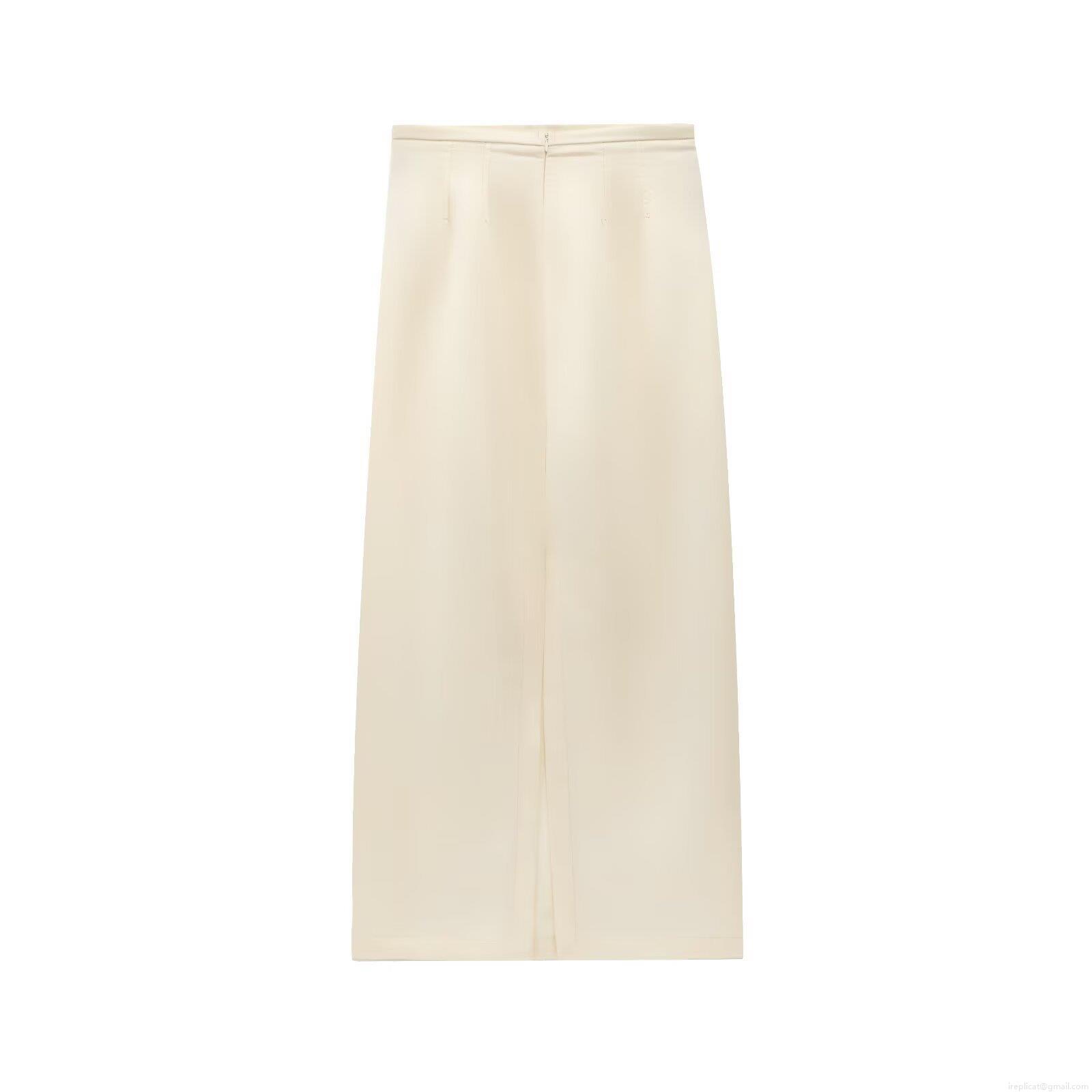 • Women's Elegant High Waist Satin Midi Skirt Sexy Cream White Straight Pencil Skirt With Back Slit For Party Daily Casual Lady Bodycon Long Skirt