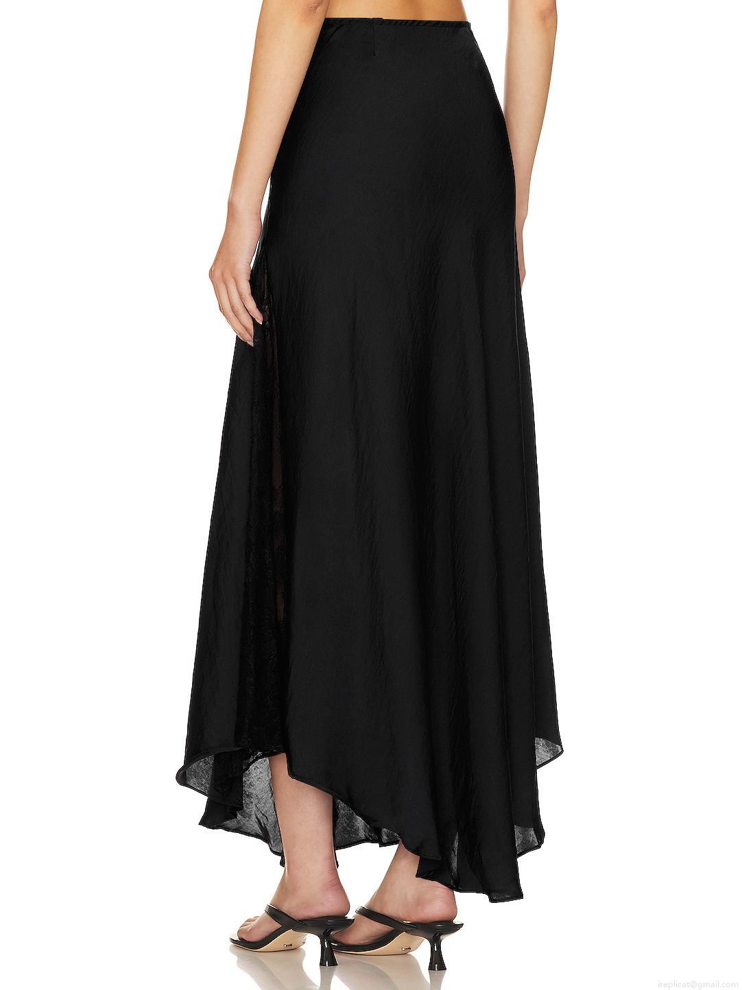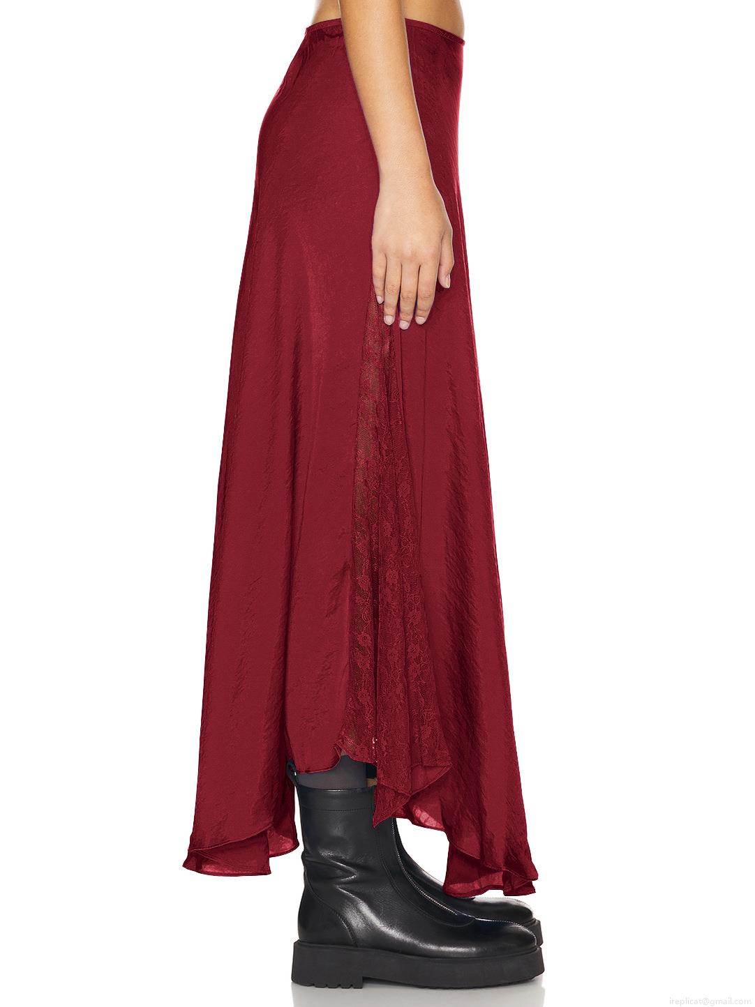 • Women's Elegant High Waist Satin Midi Skirt With Lace Stitching Sexy Silky Straight Skirt For Party Evening Clubwear Solid Black Skirt