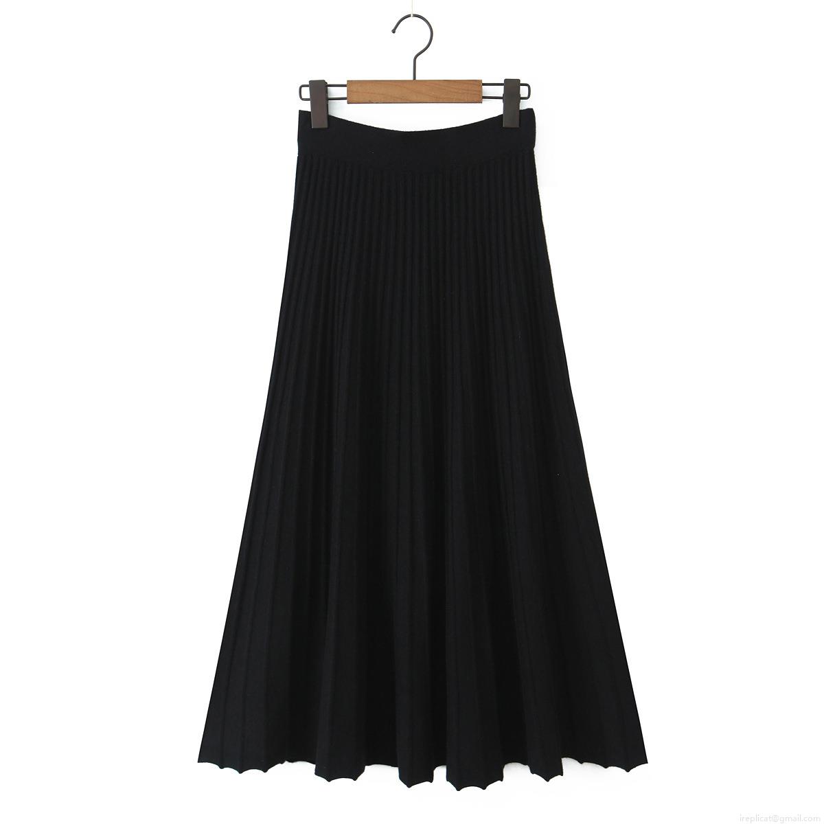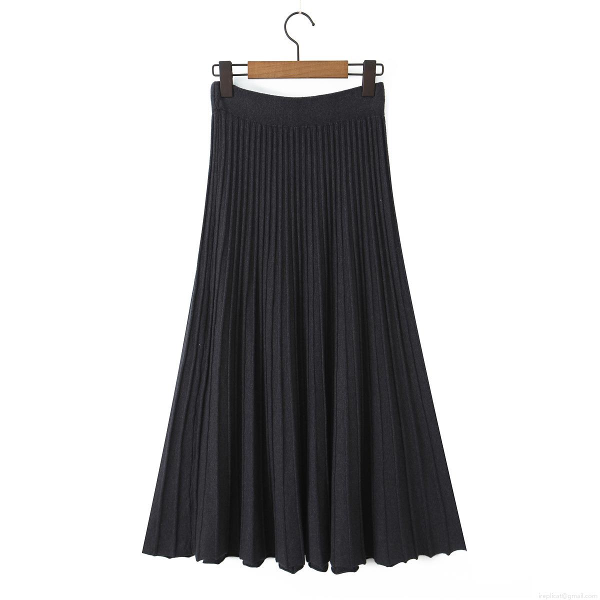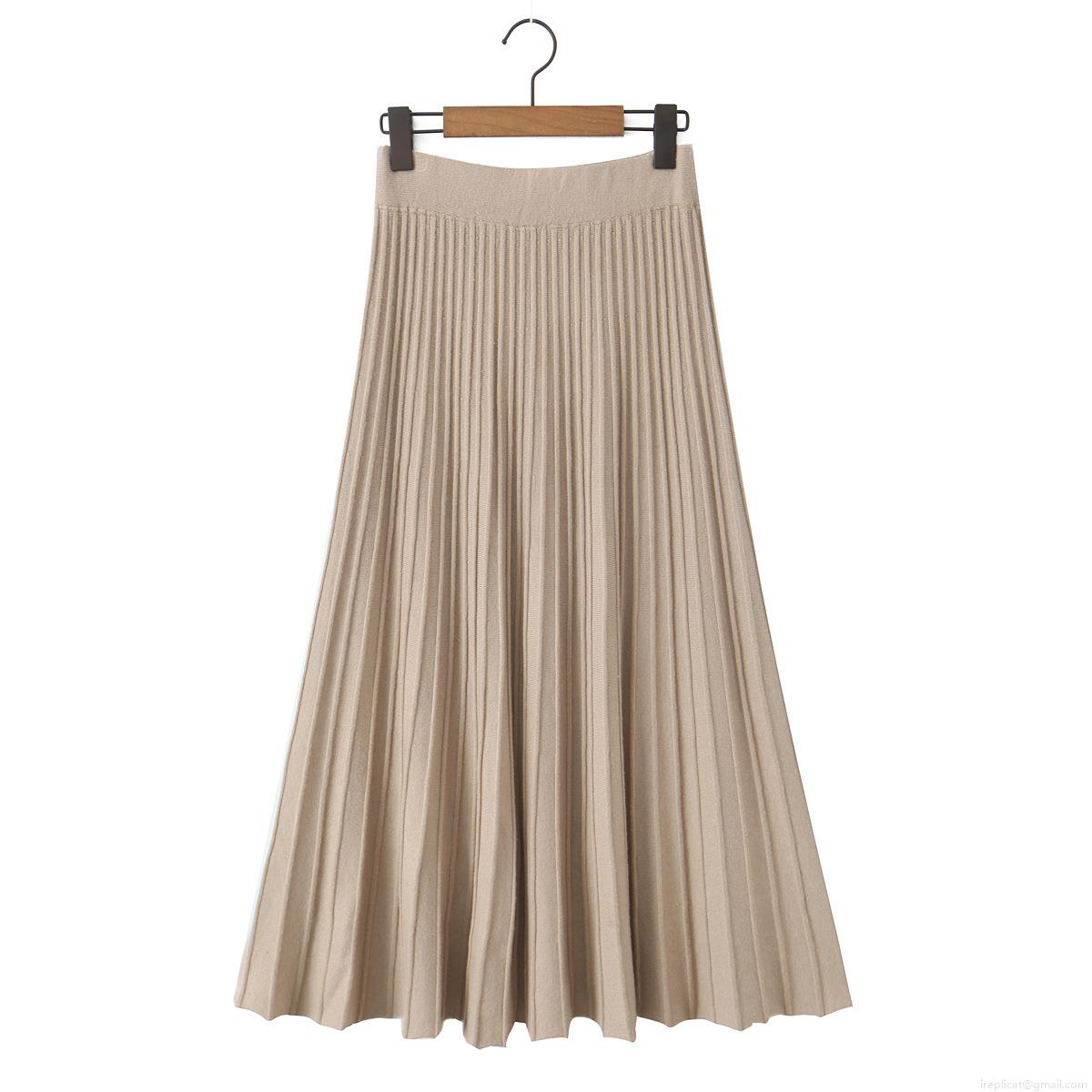 • Women's Elegant Knitted Pleated Midi Skirt Elastic High Waist A-Line Long Skirt Solid Color Casual Streetwear Fashion Skirt for Women Autumn Winter