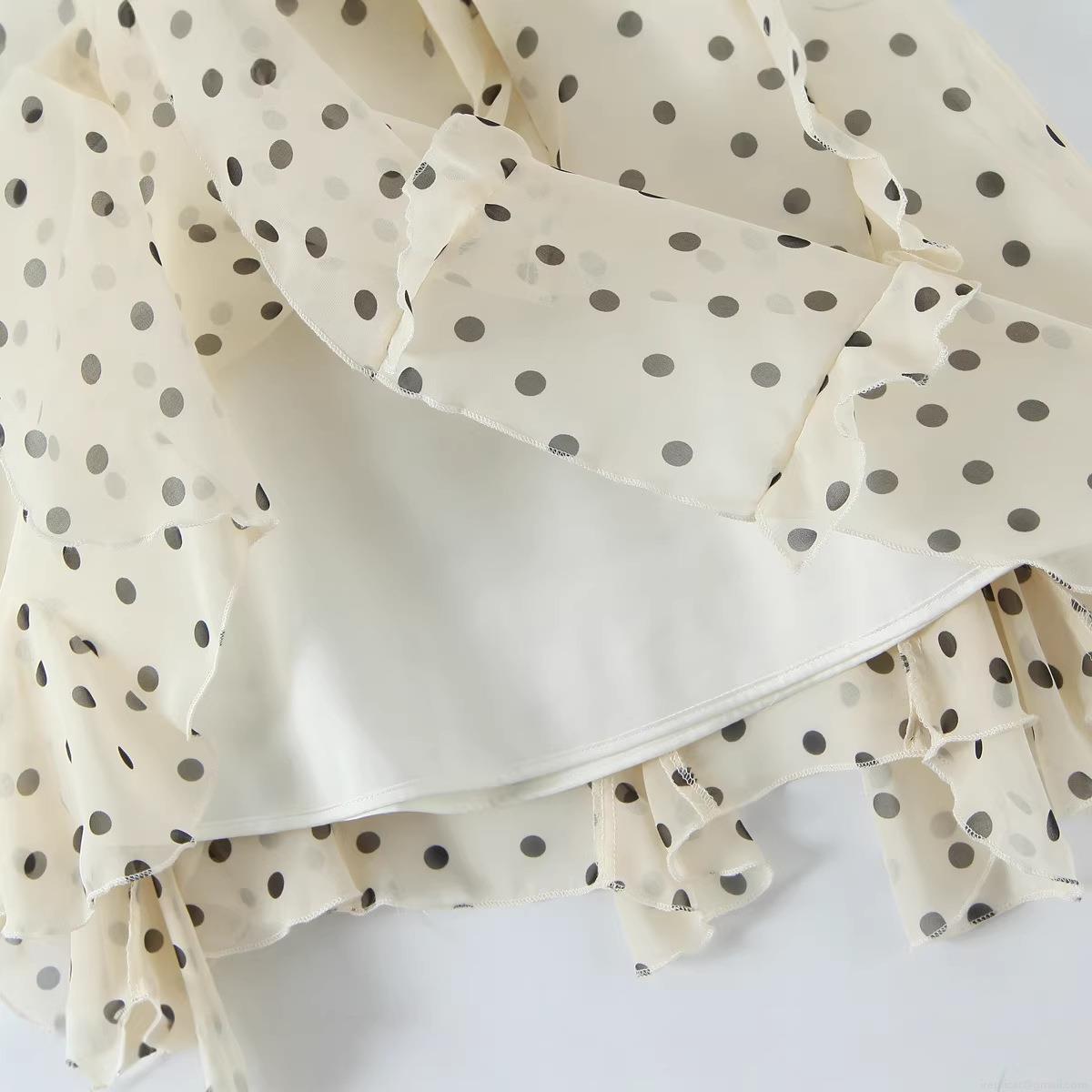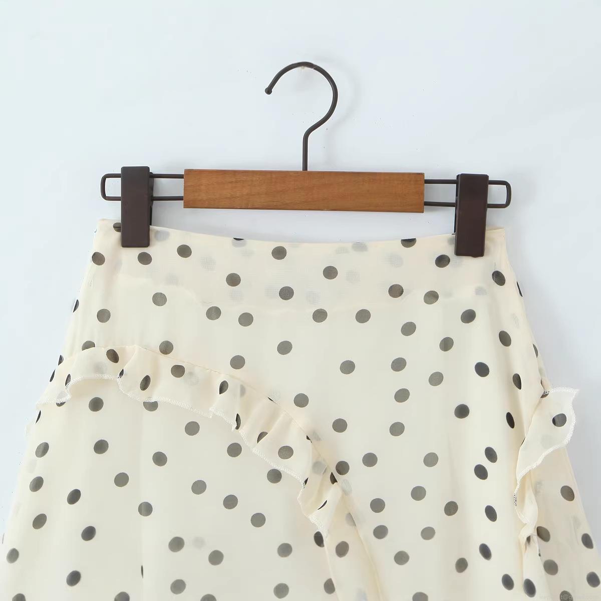 • Women's Elegant Polka Dot Ruffle Skirt High Waist Irregular Hem Mid-Length Polyester Flowy Summer Skirt European Street Style Casual Bottoms for Ladies
