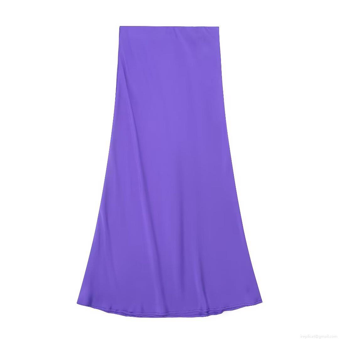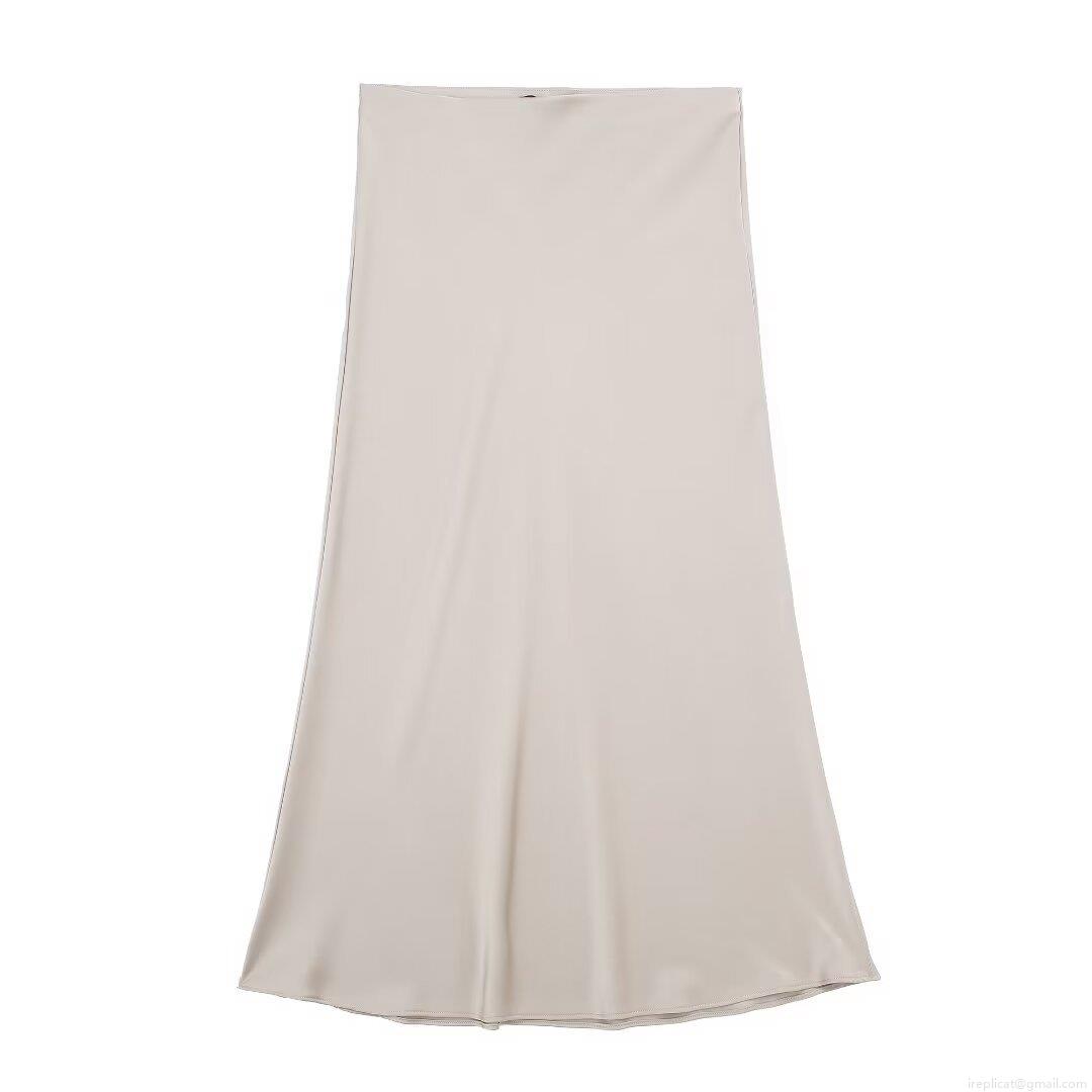 5 stars – This elegant polyester satin midi skirt is **incredibly smooth, silky and classy**! The soft satin fabric features a luxurious glossy texture with excellent drape, comfortable and lightweight to wear. Middle waist design fits naturally, while the classic A-line cut slims the waist and hides hips perfectly, flattering all body types. Solid color style is simple, versatile and easy to match, ideal for dates, parties, daily outings and streetwear. Fine stitching, true to size, flowy and stylish. Super elegant and highly recommended!