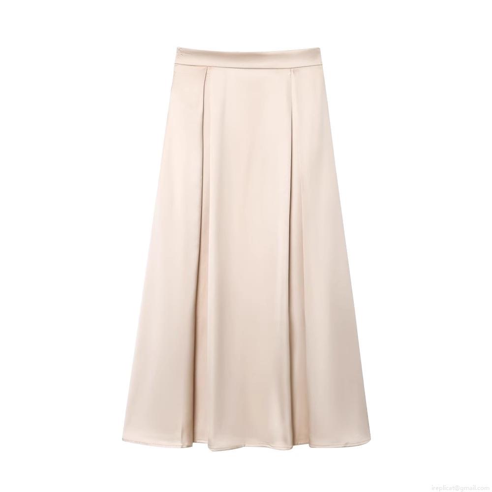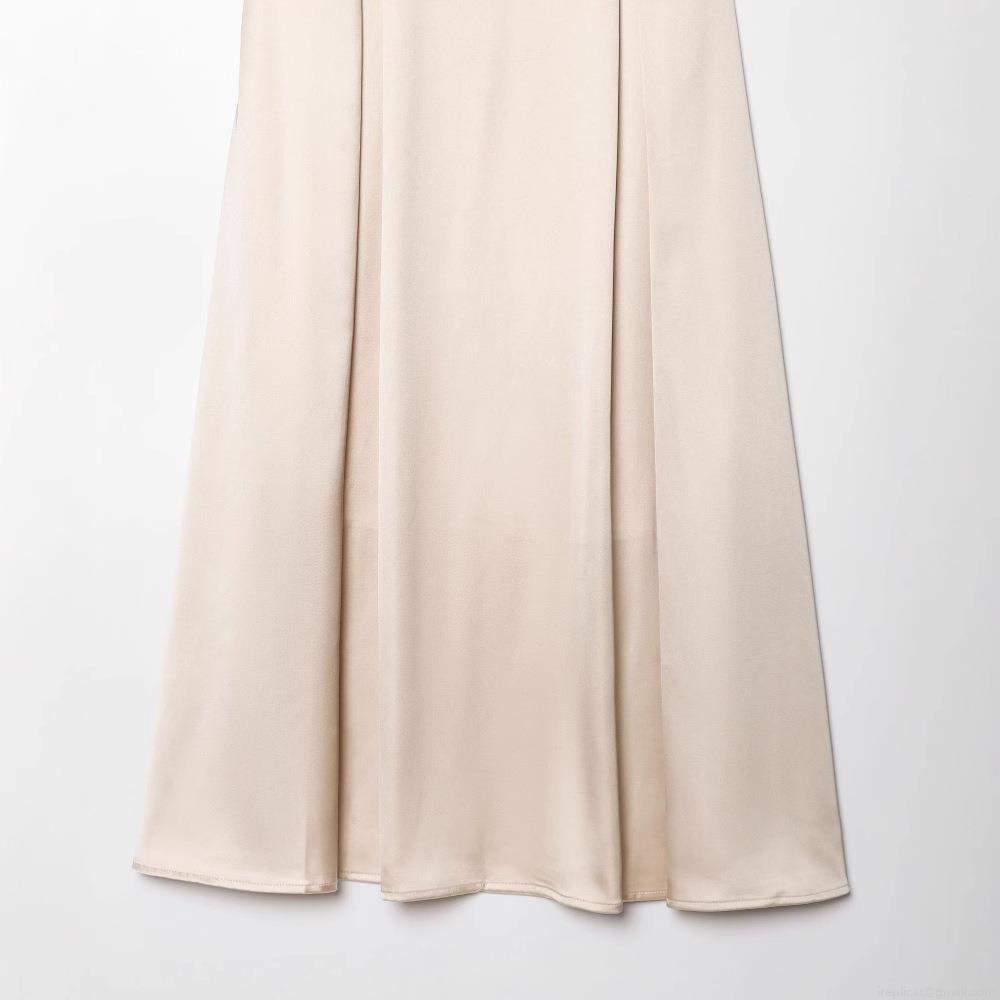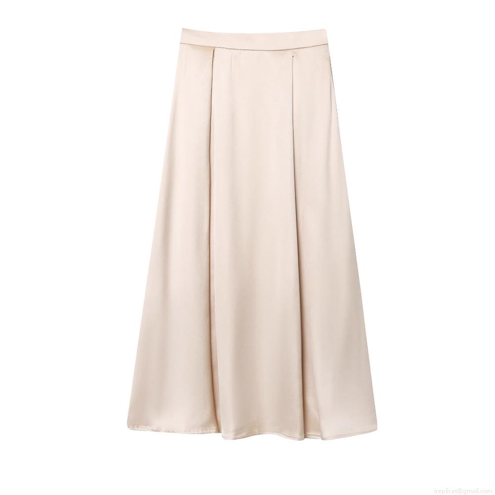 • Women's Elegant Satin Midi Skirt High Waist A-Line Champagne Apricot Silk Texture Flowy Long Skirt For Party Daily Streetwear