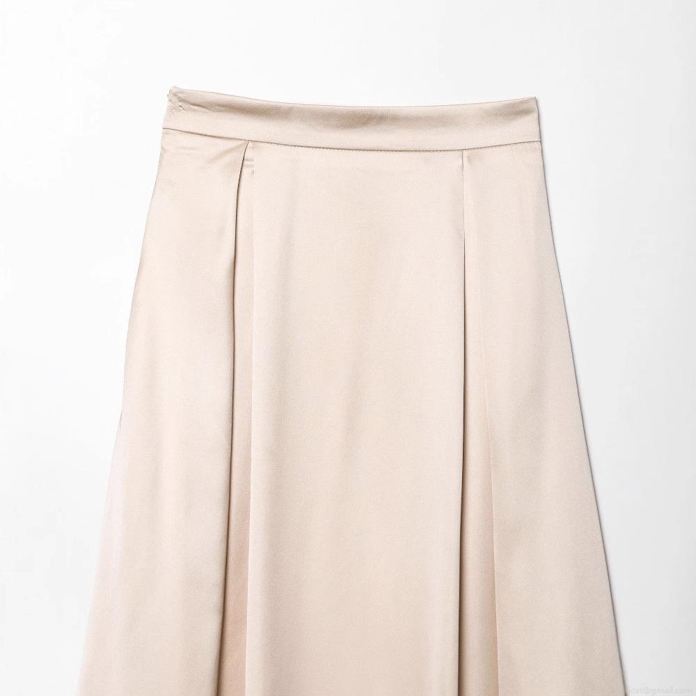 Women's Elegant Satin Midi Skirt High Waist A-Line Champagne Apricot Silk Texture Flowy Long Skirt For Party Daily Streetwear