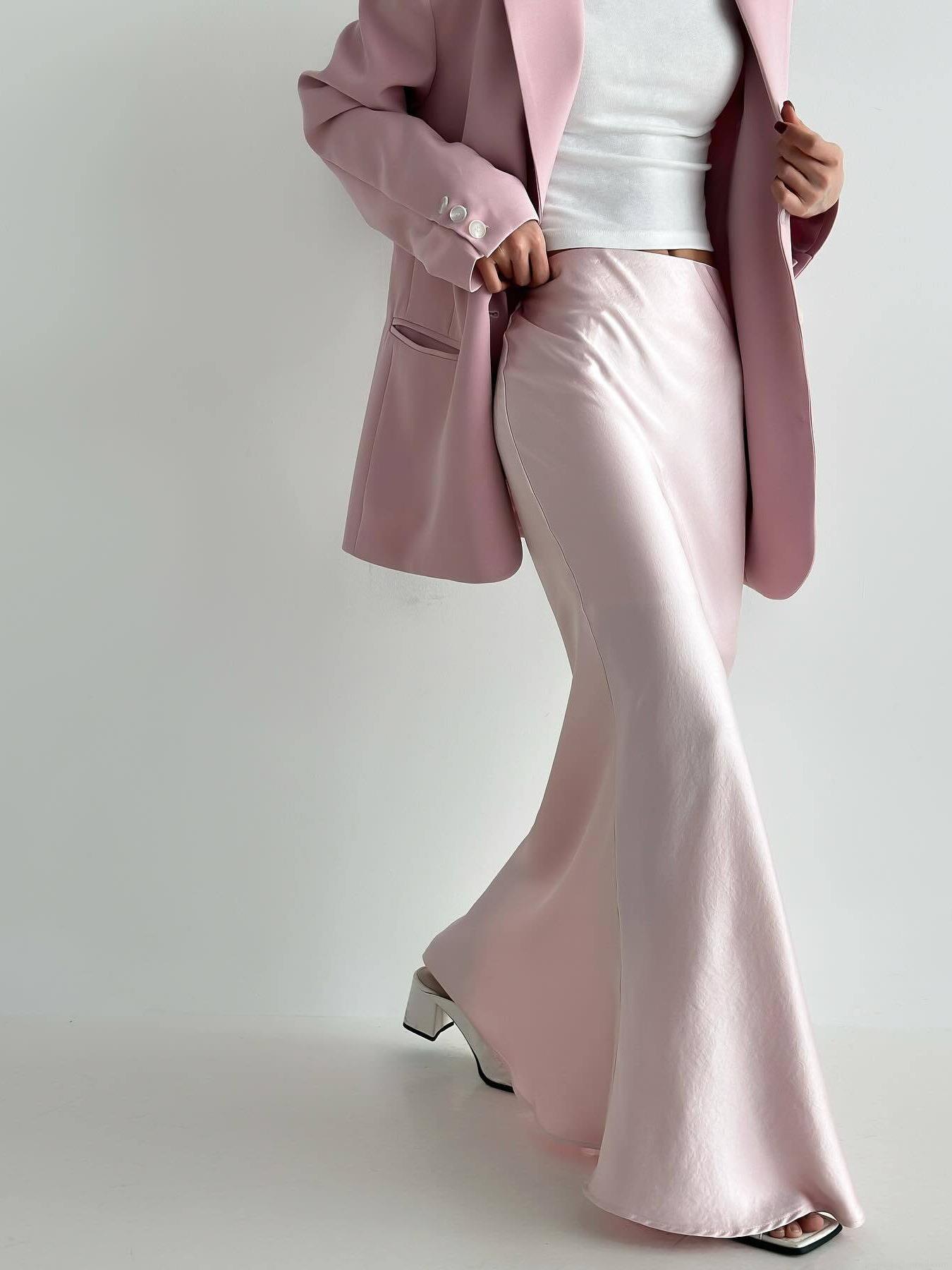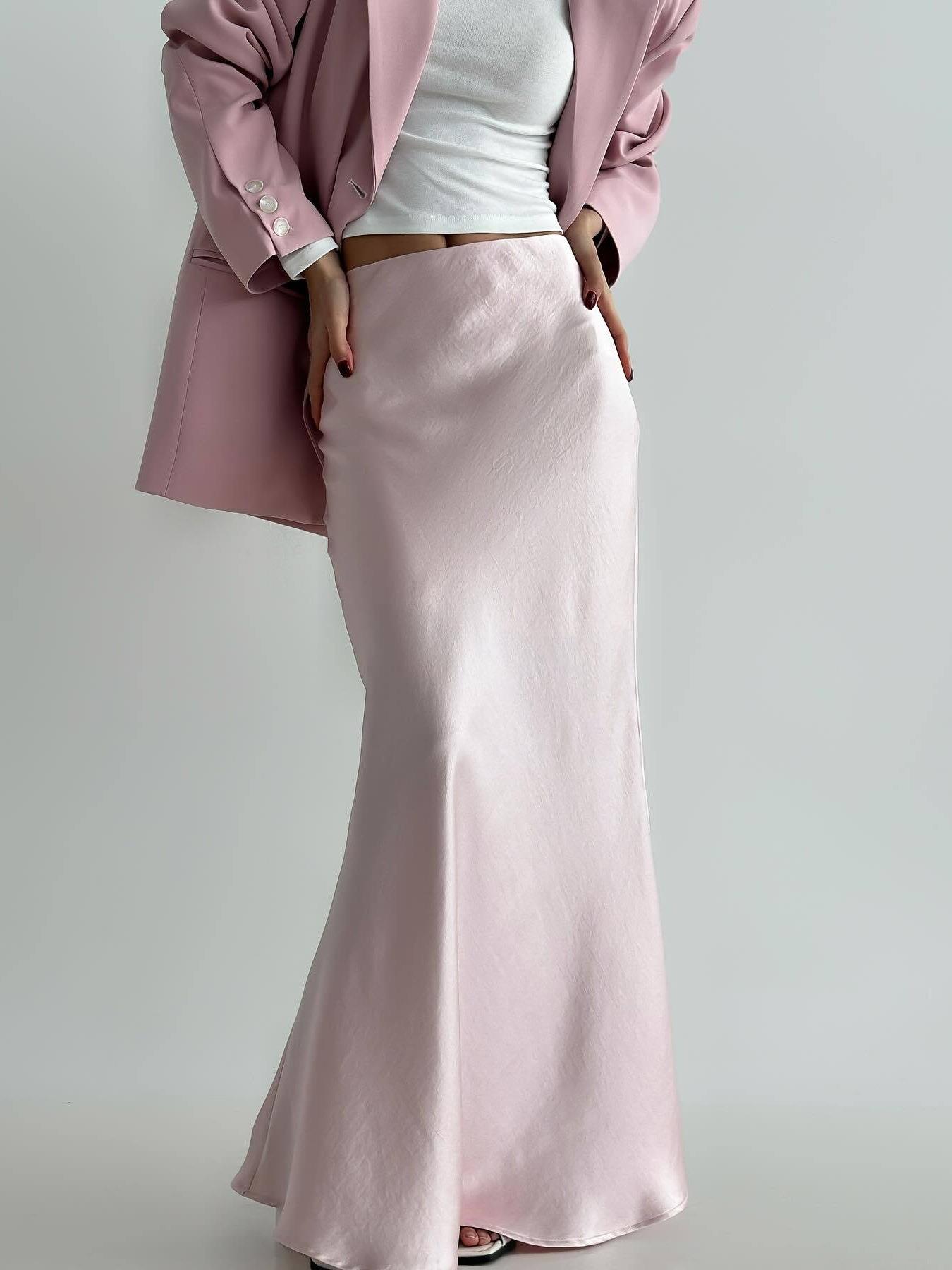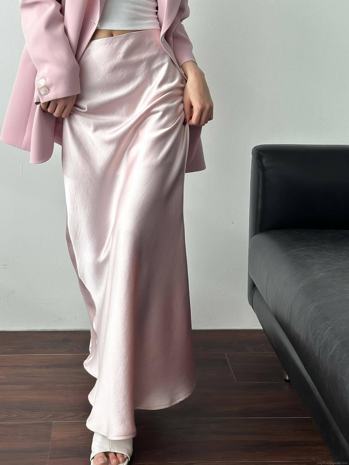 • Women's Elegant Satin Midi Skirt High Waist Solid Color Bias Cut Silk Texture A-Line Fish Tail Skirt For Office Daily Commuter Wear