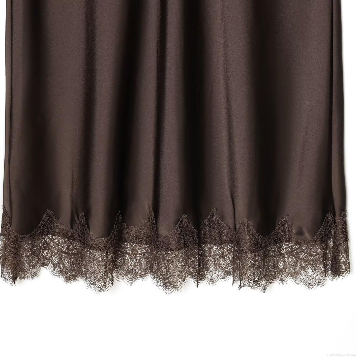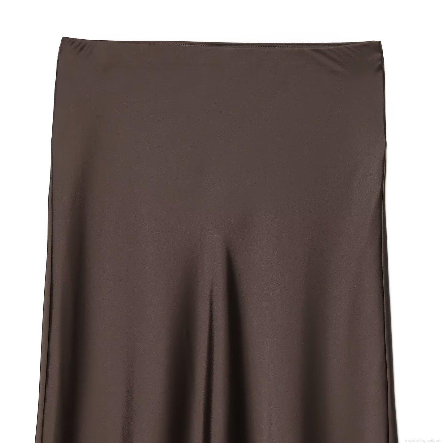 • Women's Elegant Satin Midi Skirt With Lace Hem Solid Color High Waist A-Line Silk Texture Skirt For Office Party Daily Wear