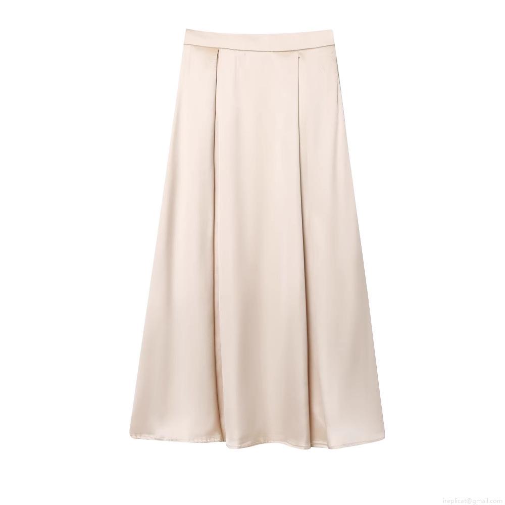Women's Elegant Satin Mid-Length A-Line Skirt Silky High Waist Apricot Champagne Gold Skirt For Daily Office Party Wear