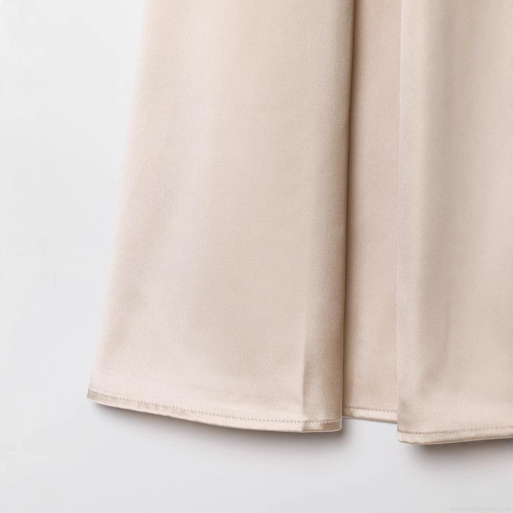 • Women's Elegant Satin Mid-Length A-Line Skirt Silky High Waist Apricot Champagne Gold Skirt For Daily Office Party Wear
