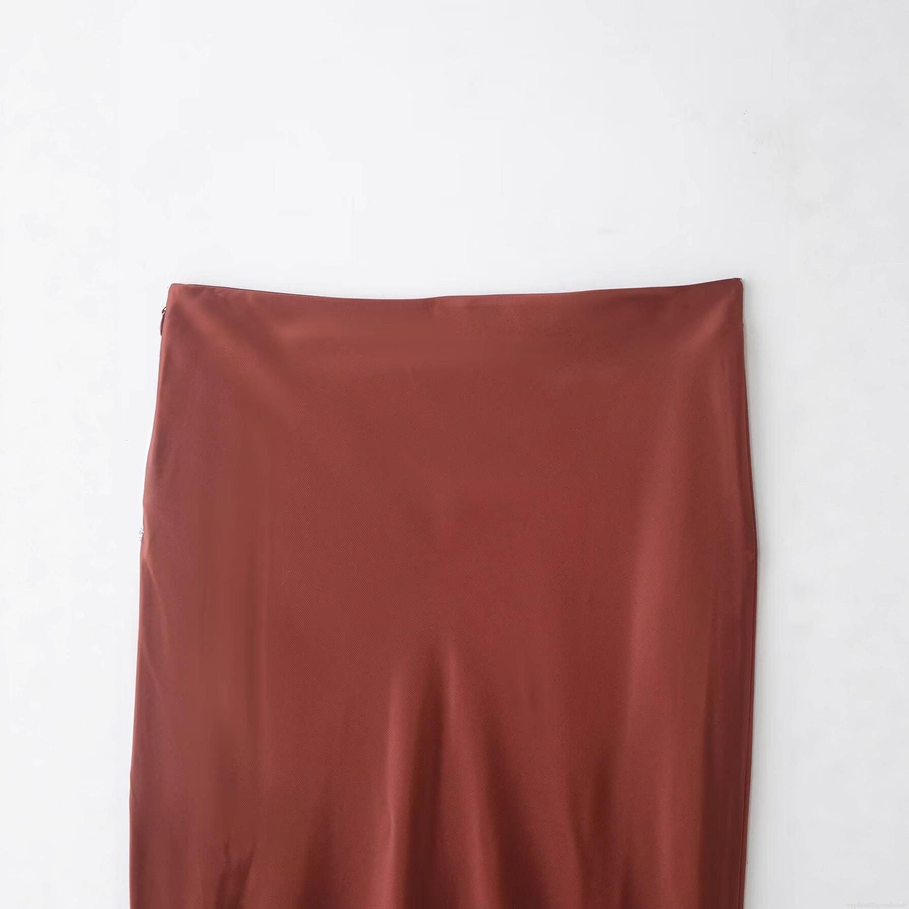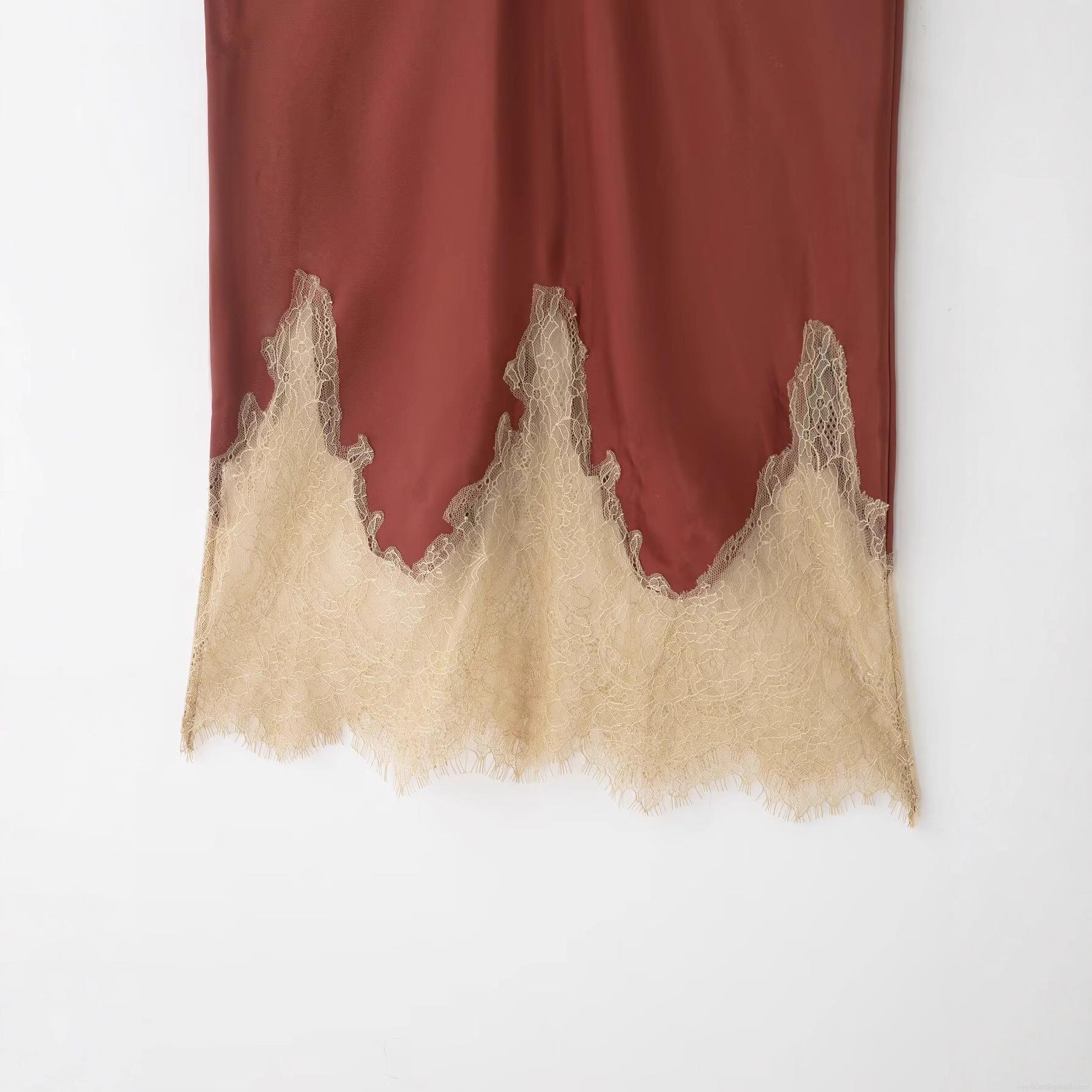 • Women's Elegant Satin Polyester Midi Skirt With Beige Lace Trim Side Invisible Zipper High Waist Color-Blocking A-Line Skirt For Party Dating Streetwear Lady Clothing