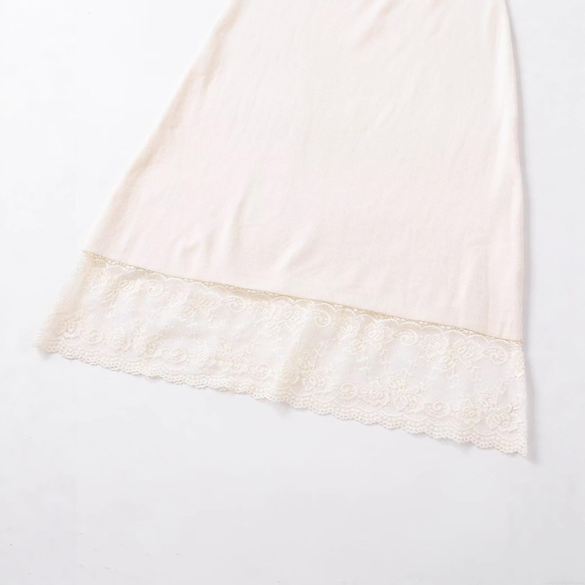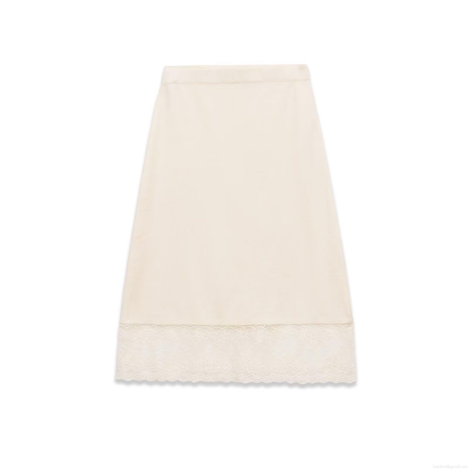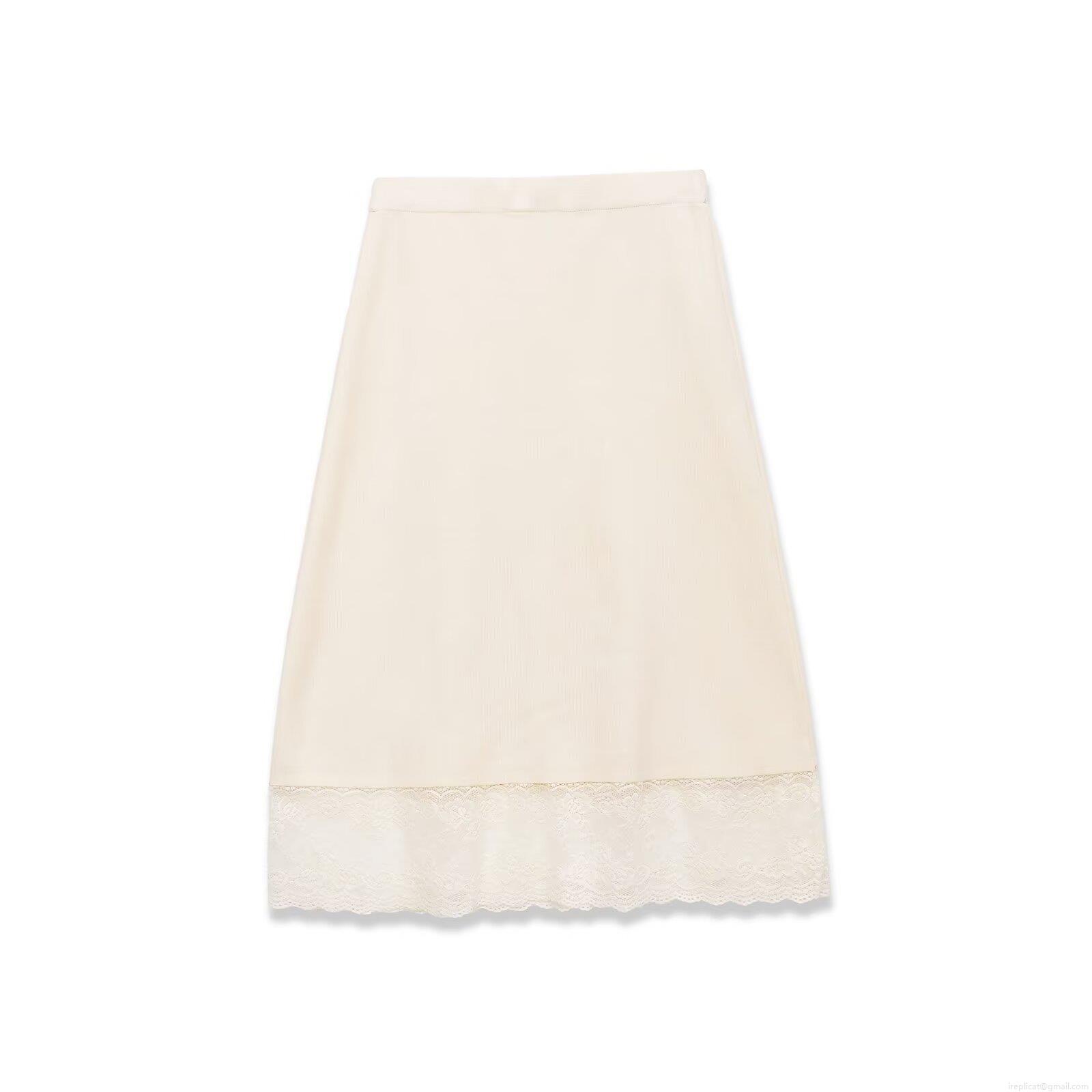 • Women's Elegant Satin Texture Midi Skirt With Lace Trim Hem Patchwork High Waist Elastic Skirt For Daily Dating Streetwear Ladies Beige