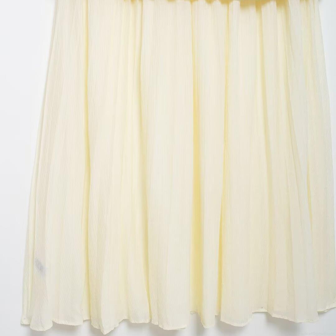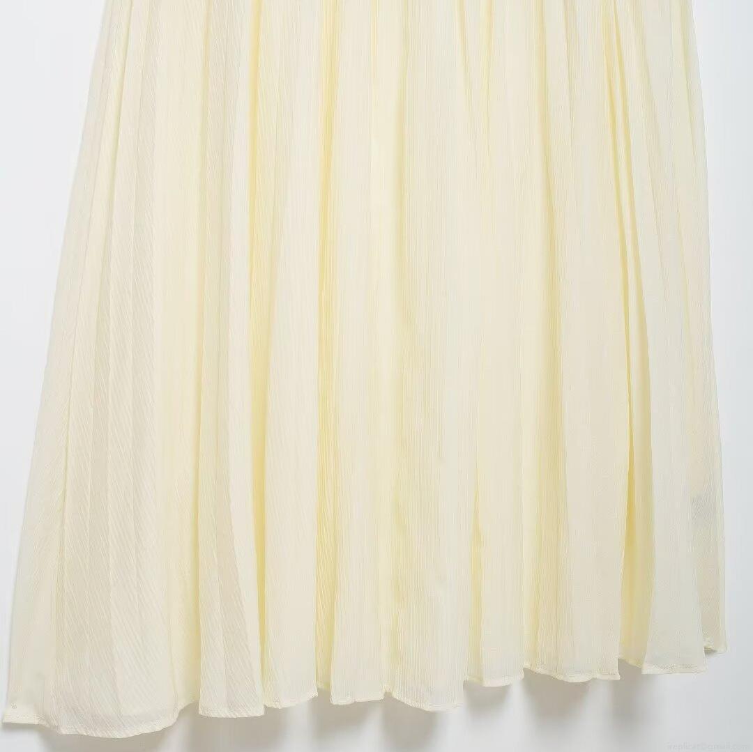 • Women's Elegant Solid Color Pleated Patchwork Long Skirt High Waist Mesh Chiffon Skirt With Zipper For Commute Daily Wear