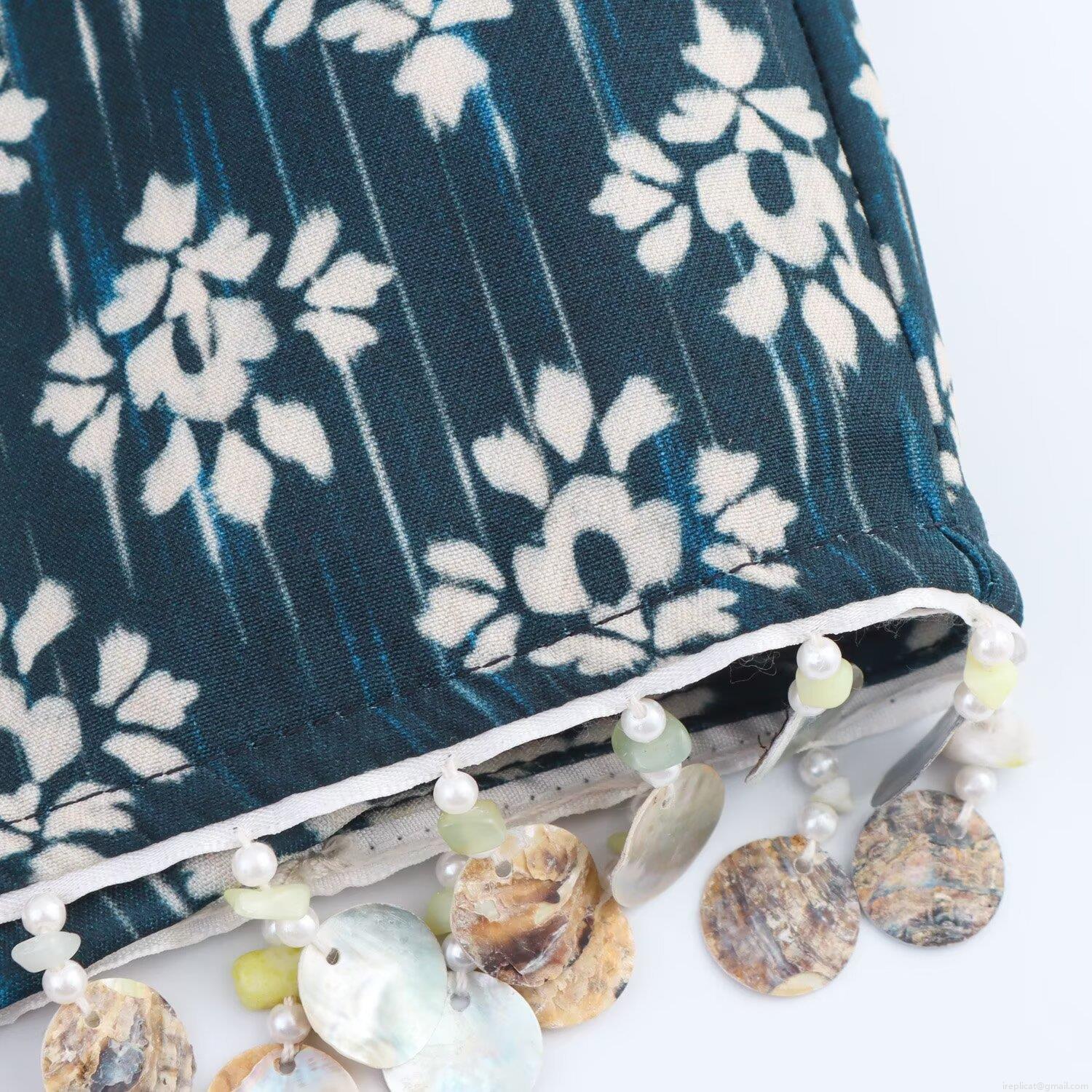 • Women's Ethnic Peacock Green Floral Print Asymmetric Skort With Shell Bead Tassel Fringe Summer A-Line Mini Skirt Short Pants For Streetwear Vacation