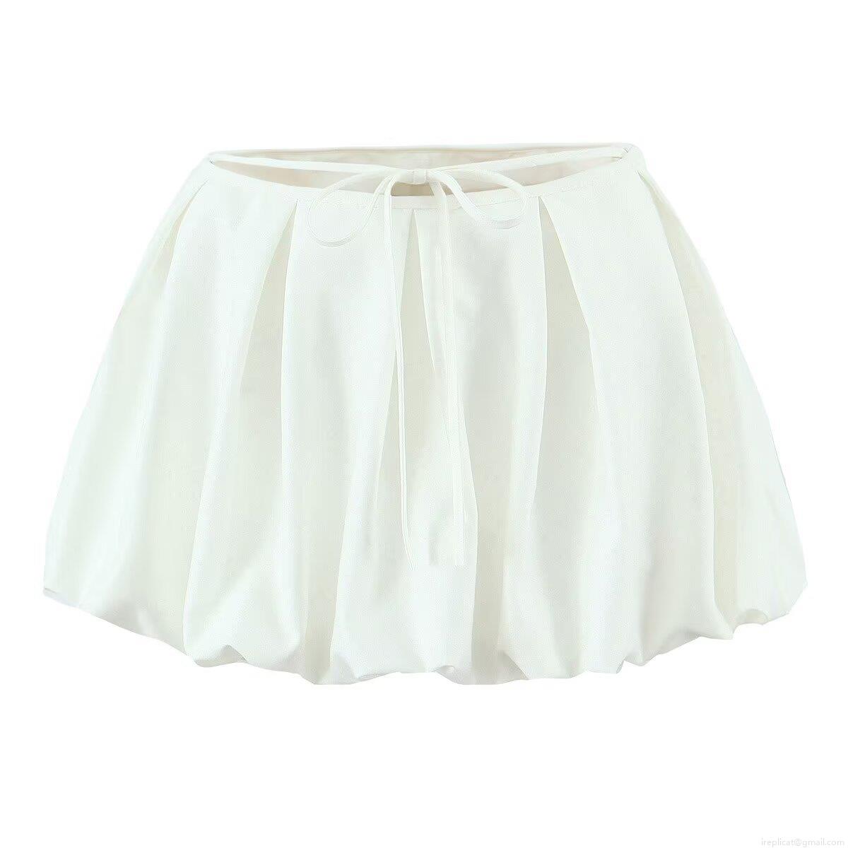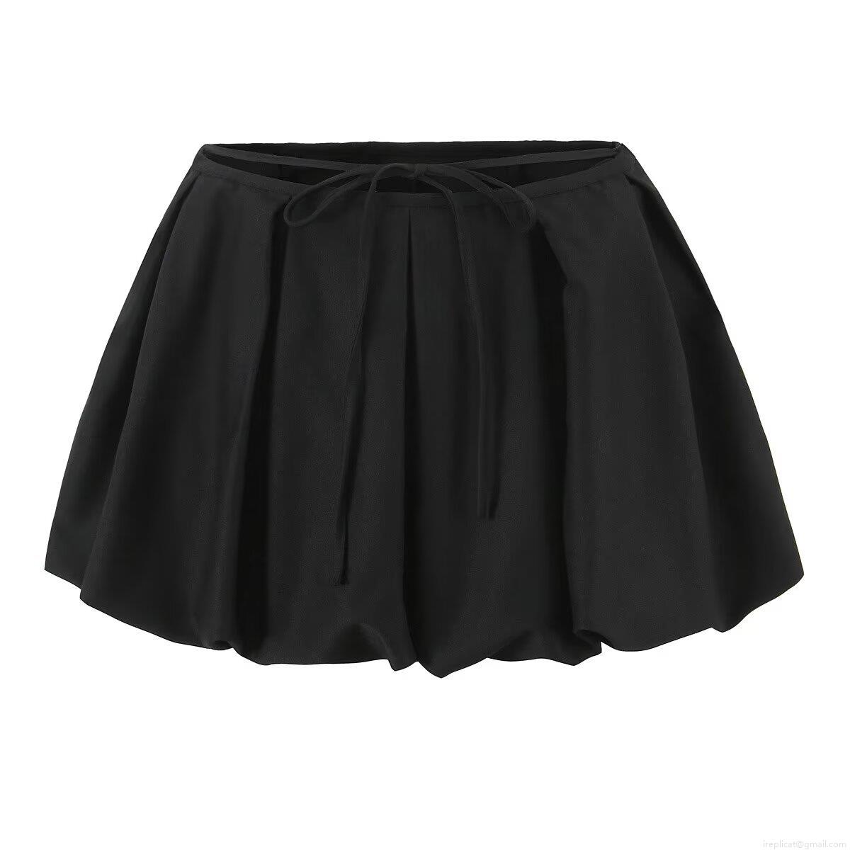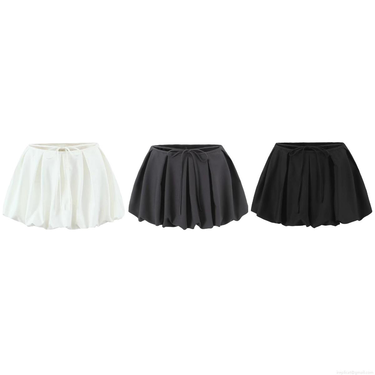 • Women's European Street Fashion Bubble Mini Skirt Solid Color Pleated Puffy Skirt With Drawstring Waist Polyester Rayon Blend Casual Short Skirt For Women