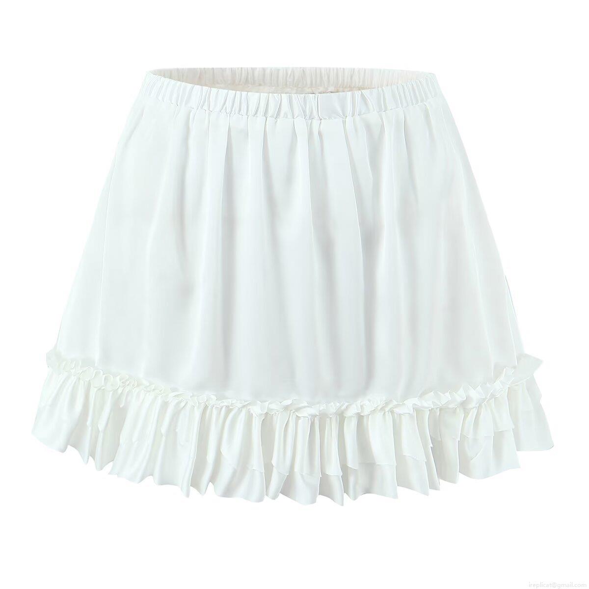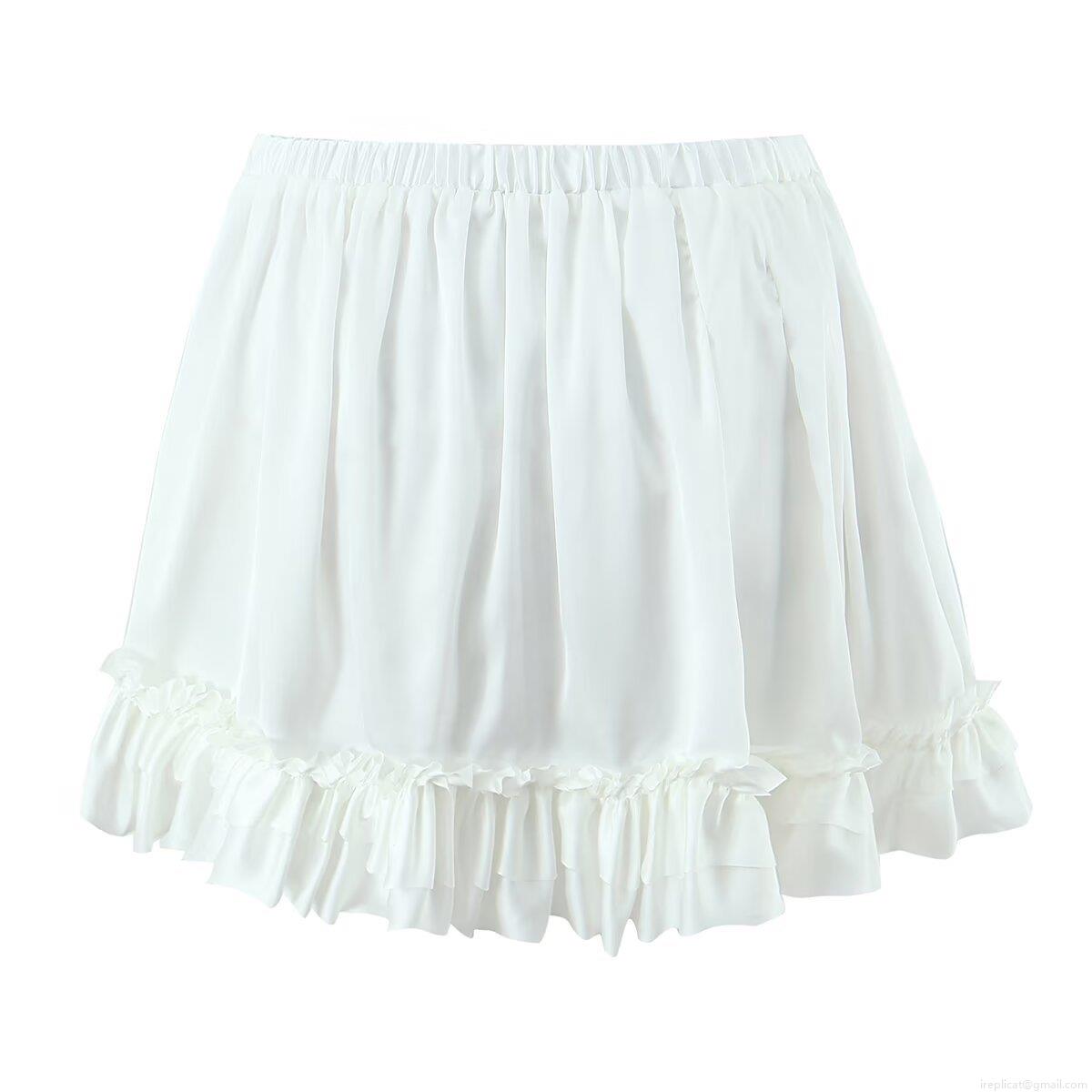 Solid Color, Splice, Ruffles, Elastic Waistband, Forked
