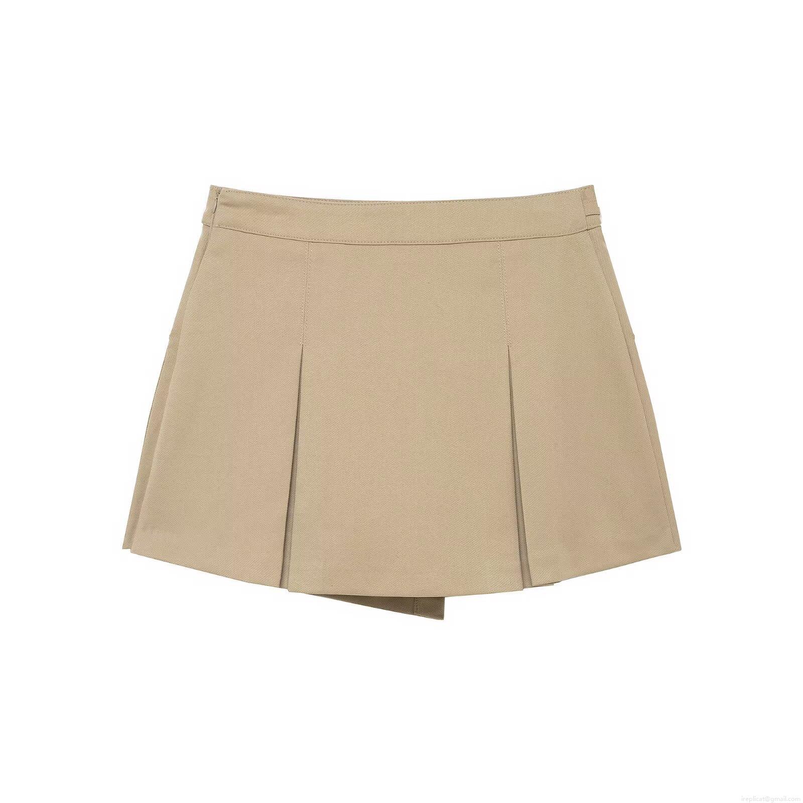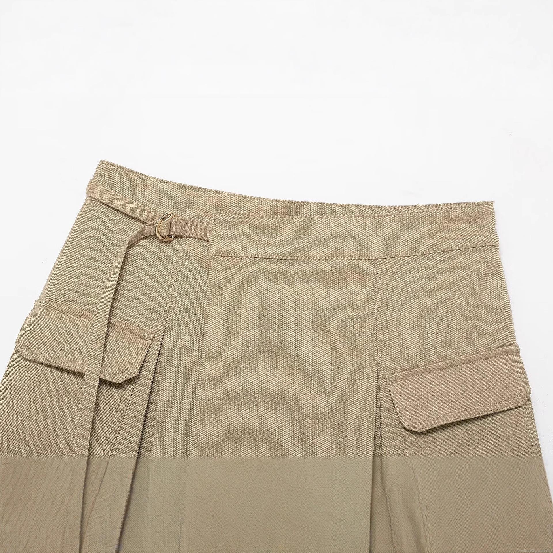 • Women's Fashion Cargo Mini Skirt Polyester Twill Khaki Wrap Design With Pockets And Metal Buckle Belt Streetwear Casual Skort For Women Daily Wear