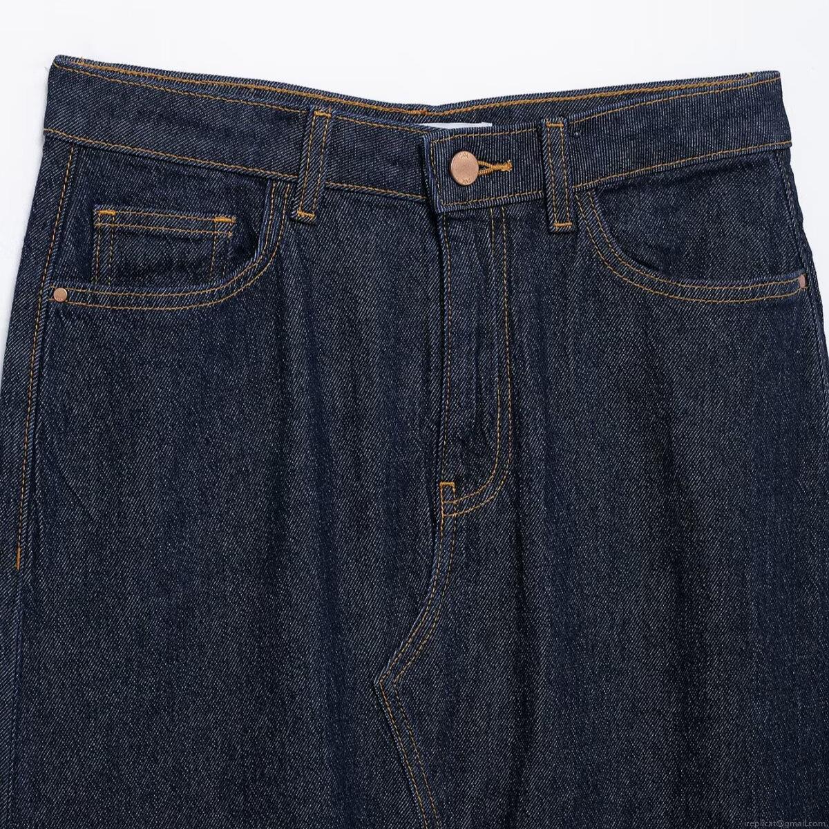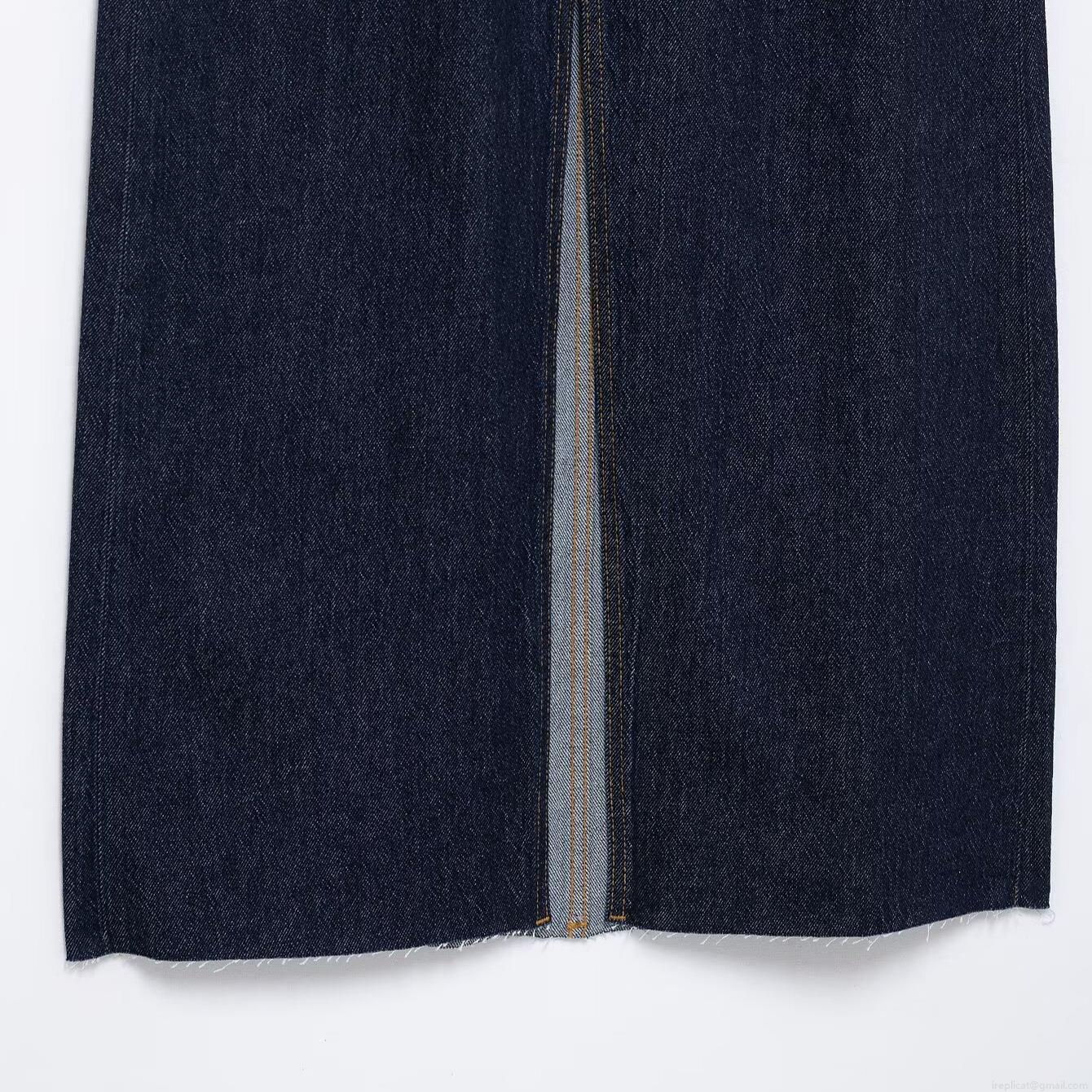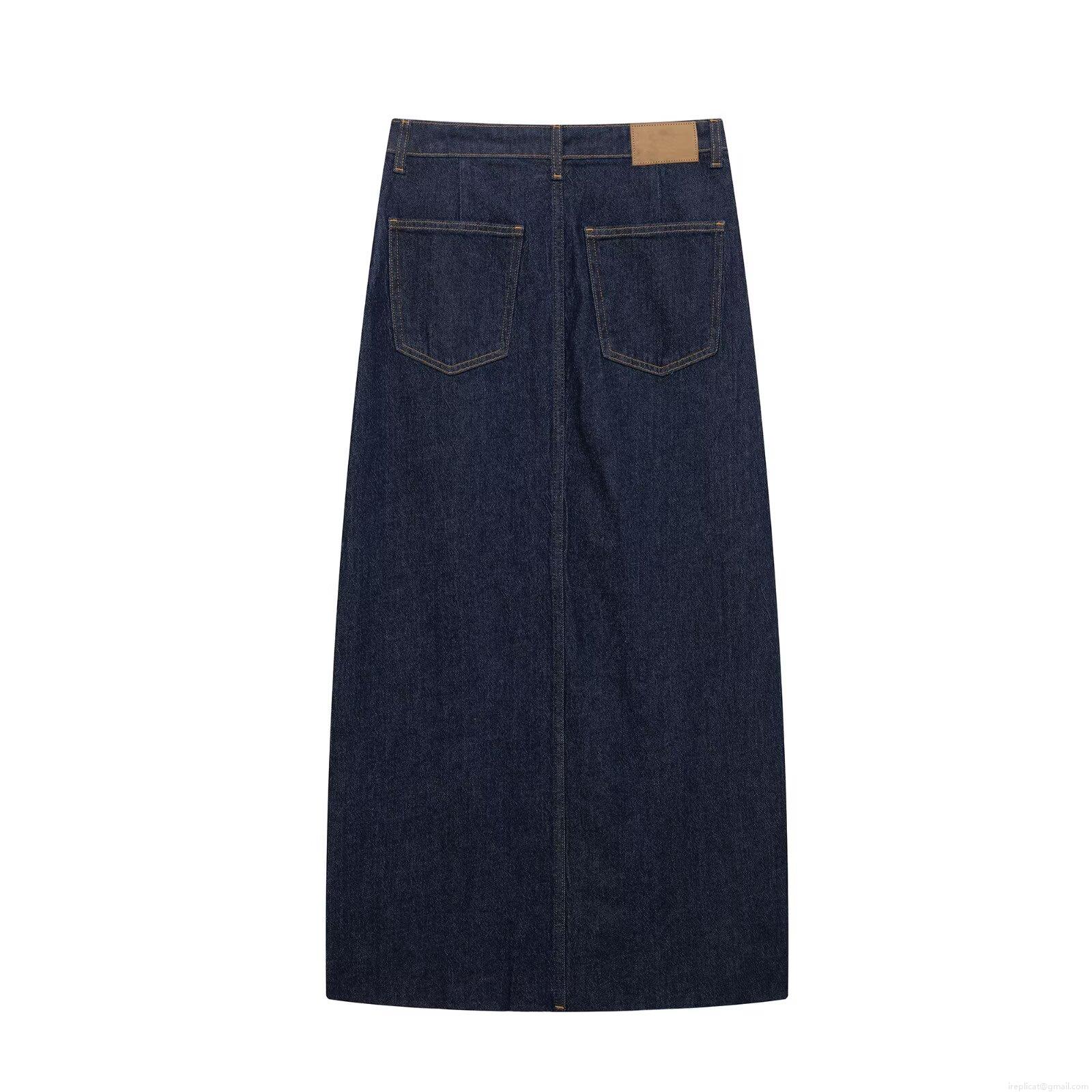 • Women's Fashion High Waist Front Slit Denim Midi Skirt Casual Versatile Washed Long A-Line Skirt With Raw Hem And Contrast Stitching