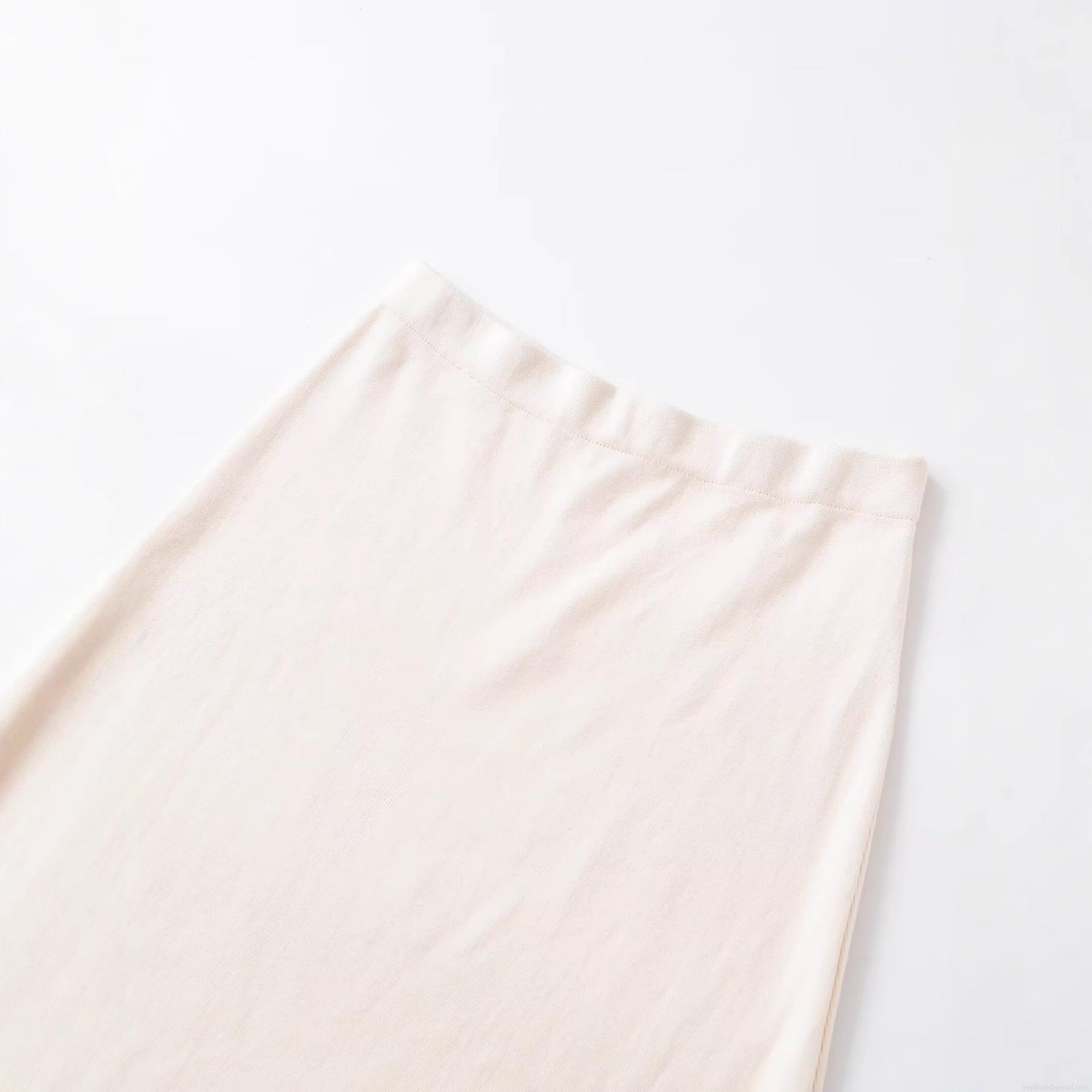 • Women's Fashion Knitted Ribbed Midi Skirt Solid Milky White Lace Trim Hem Middle Waist Polyester Bodycon Straight Skirt for Party Streetwear Casual Elegant Lady Bottoms