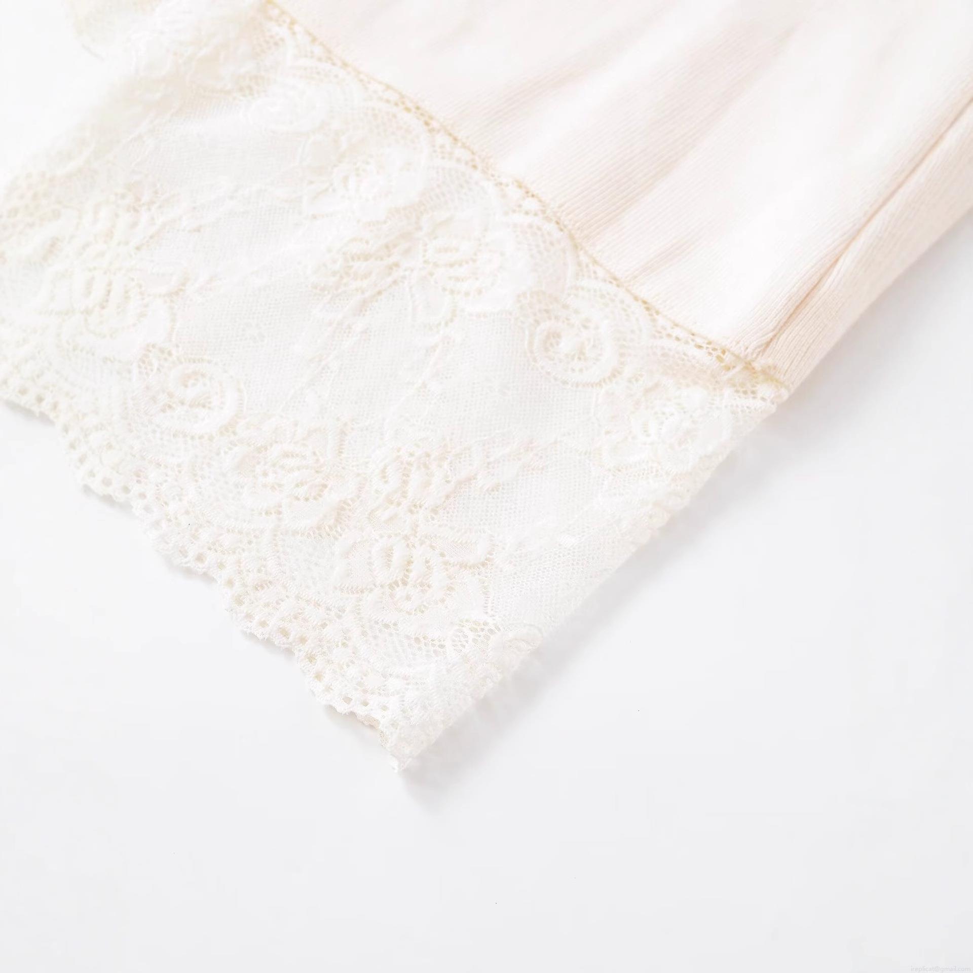 Solid Color, Lace Trim, Ribbed Knit, Beaded Decorations, Mid-waist Design