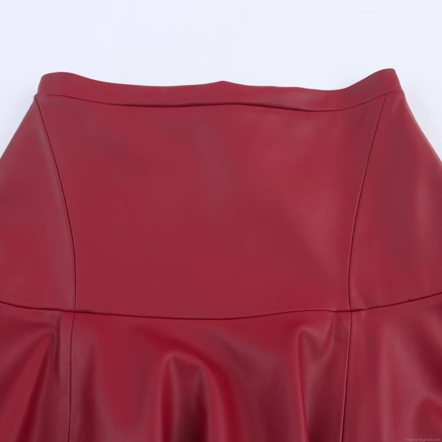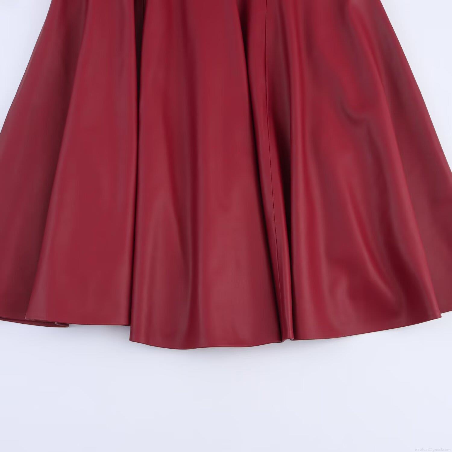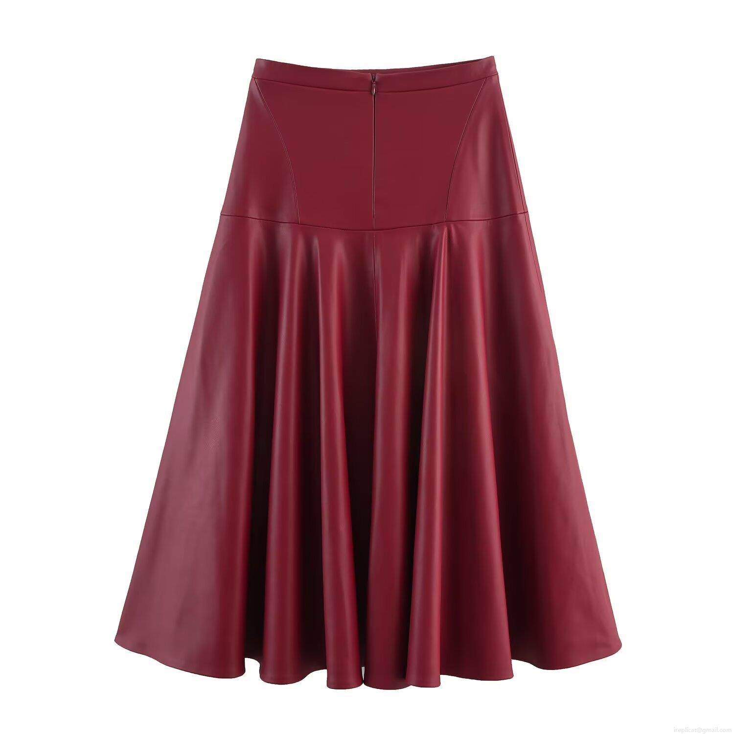 • Women's Faux Leather Pleated Midi Skirt High Waist A-Line Solid Color PU Leather Skirt For Office Streetwear Ladies Casual Elegant Bottoms