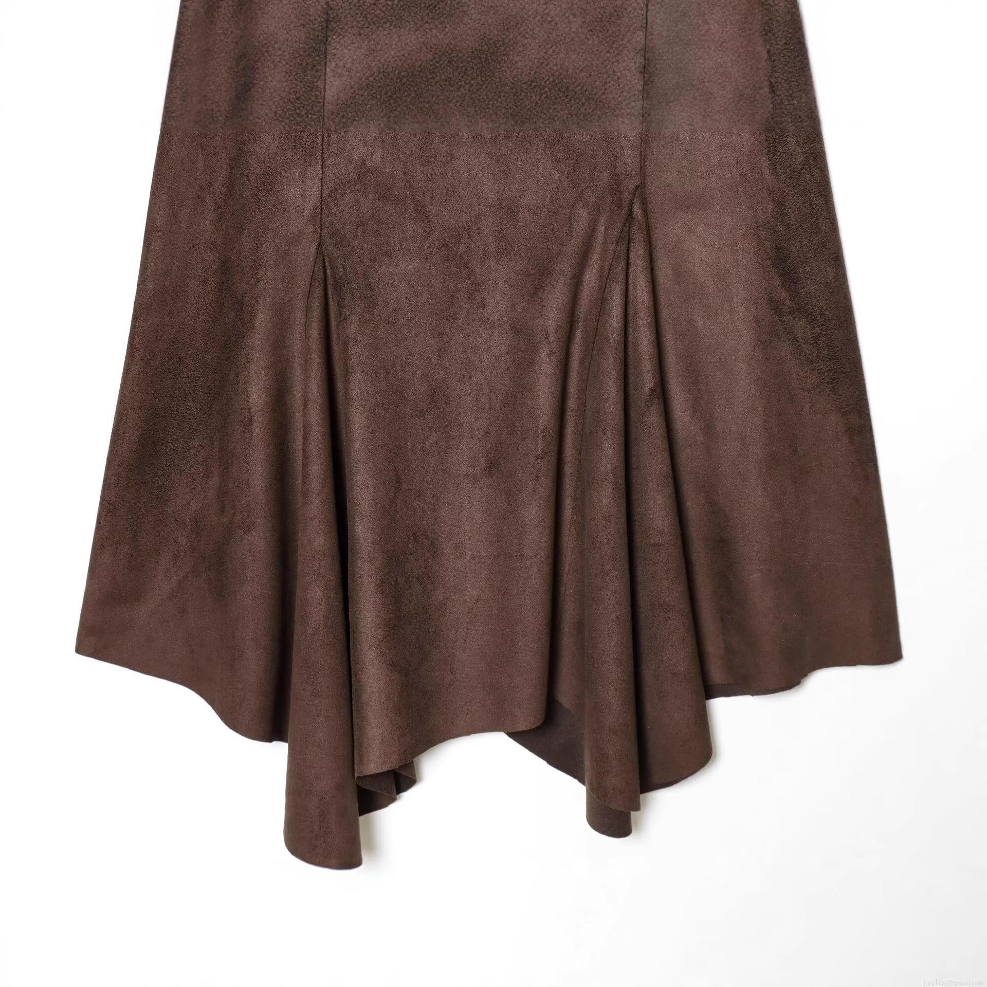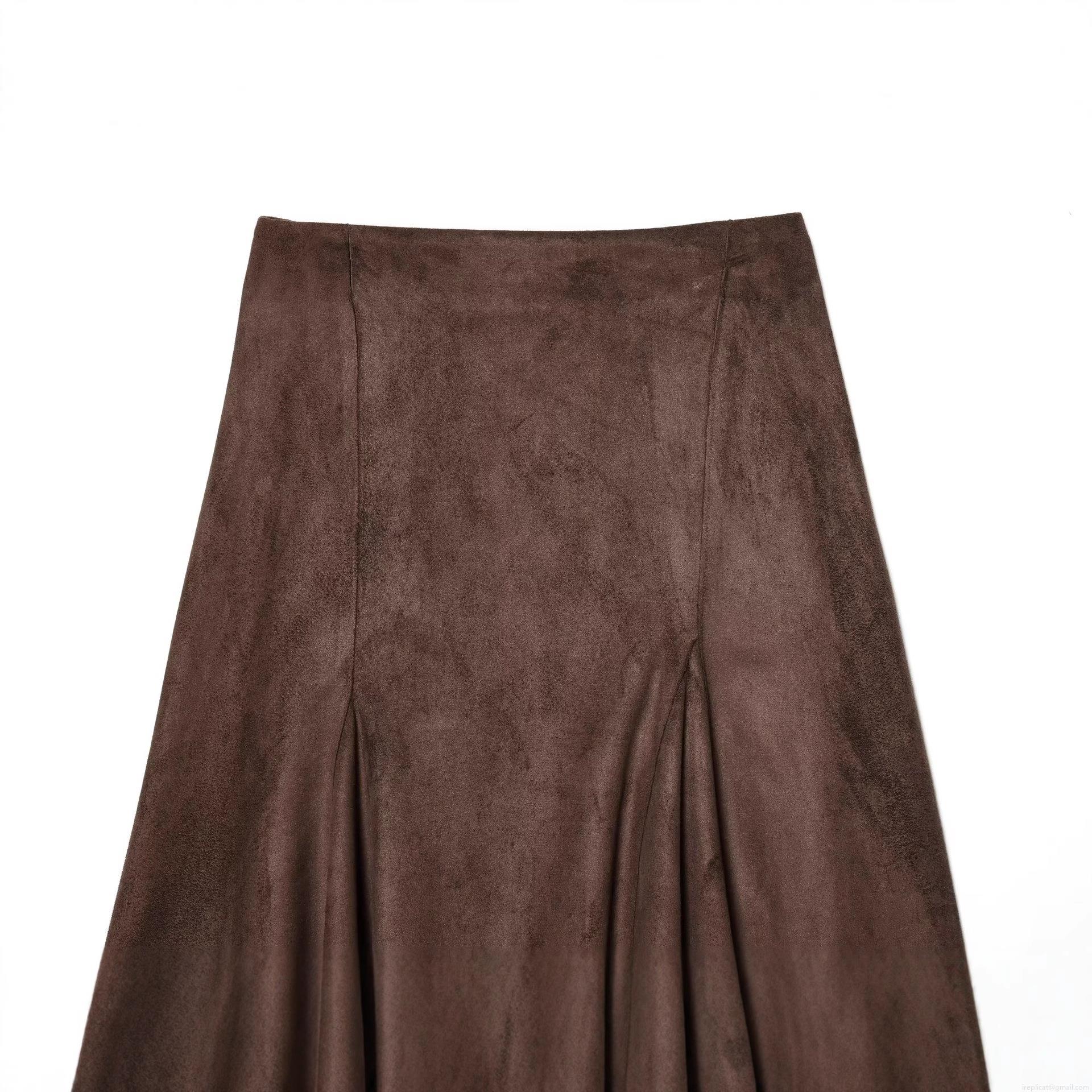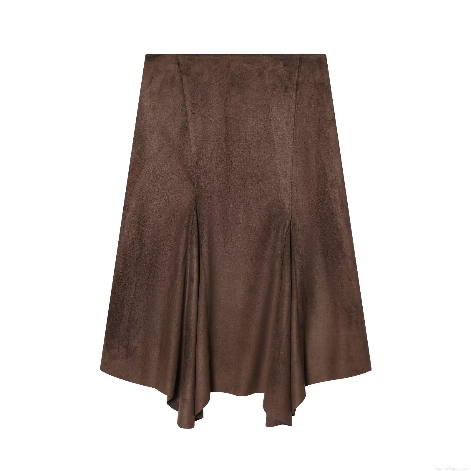 • Women's Faux Suede Asymmetric Midi Skirt High Waist Sexy Streetwear Solid Color Irregular Hem A-Line Skirt For Women Daily Party Fall Winter
