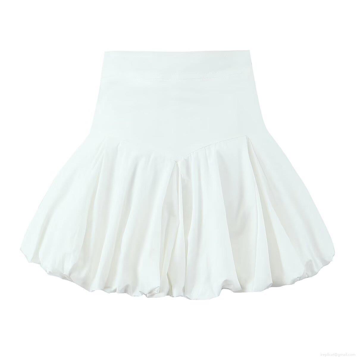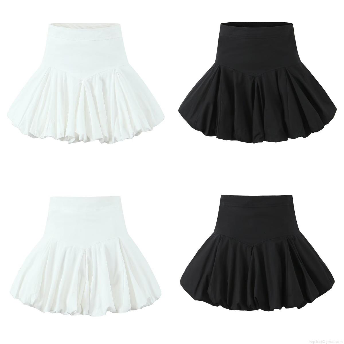 Women's French High Waist Balloon Mini Skirt Solid Color 100% Cotton A-Line Bubble Skirt Fashion Streetwear Party Wear For Lady