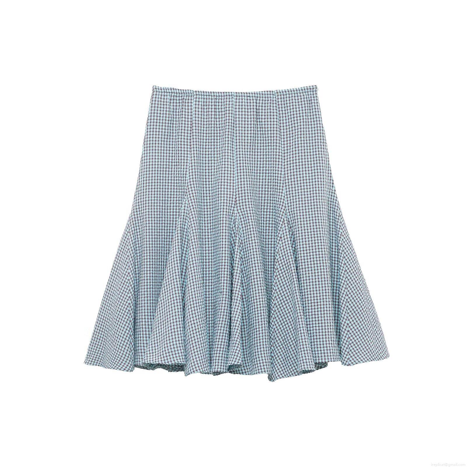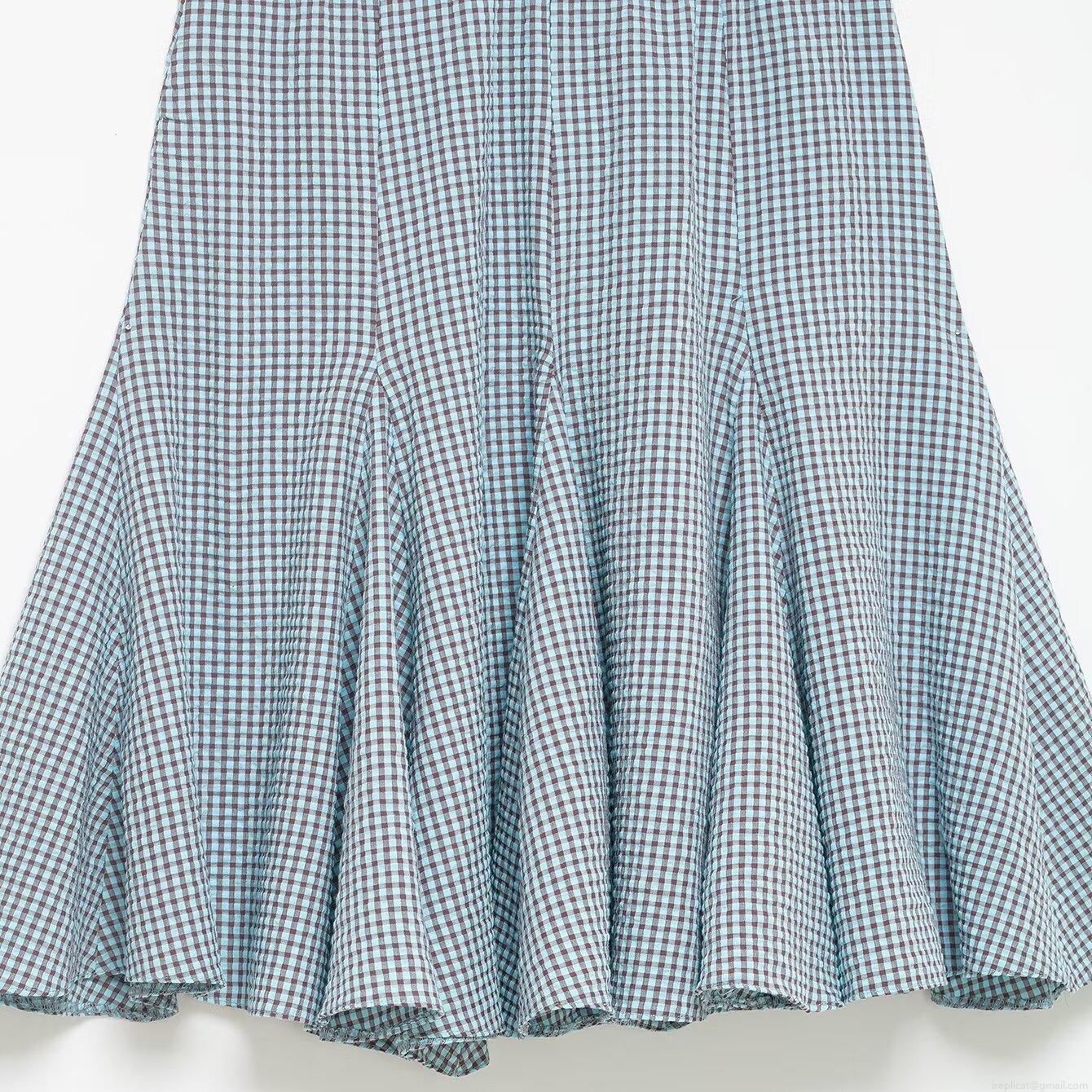 • Women's Gingham A-Line Midi Skirt Sweet Blue Plaid High Waist Elastic Swing Skirt Patchwork Seersucker Skirt for Teenagers Ladies
