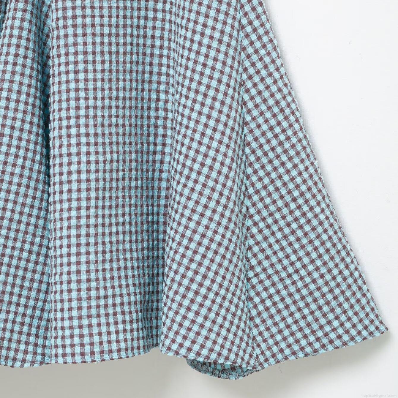 Splice, Gingham, Elastic Waistband, Seersucker Texture, Wave-shaped Wide Swing