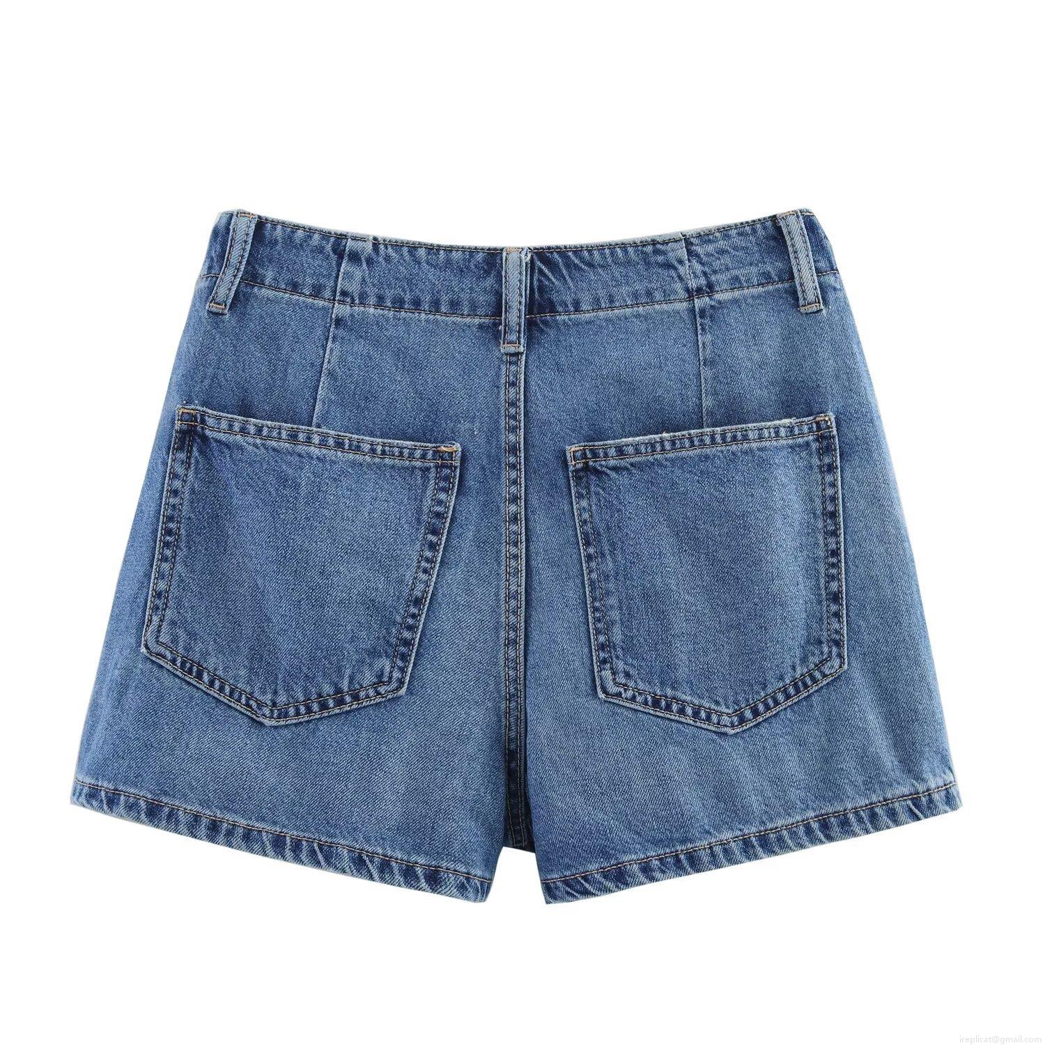 • Women's High Waist A-Line Denim Skort Contrast Stitching Royal Blue Mini Skirt With Pockets Raw Hem Summer Streetwear Fashion Bottoms