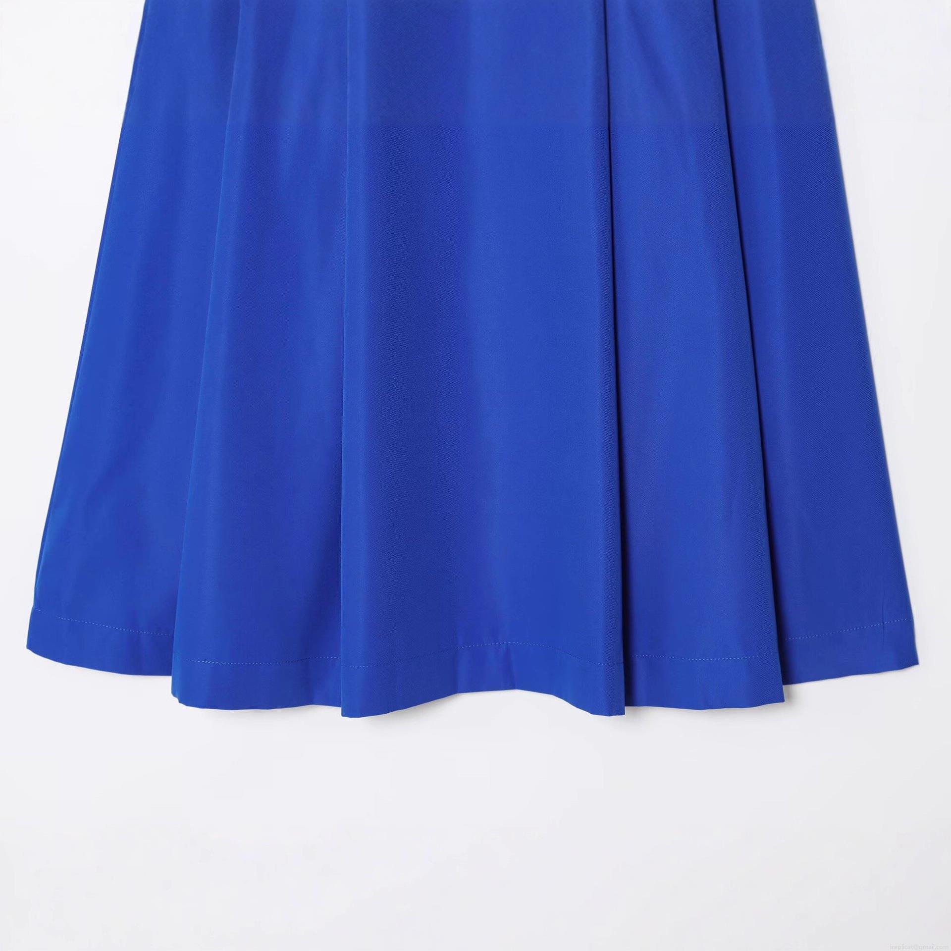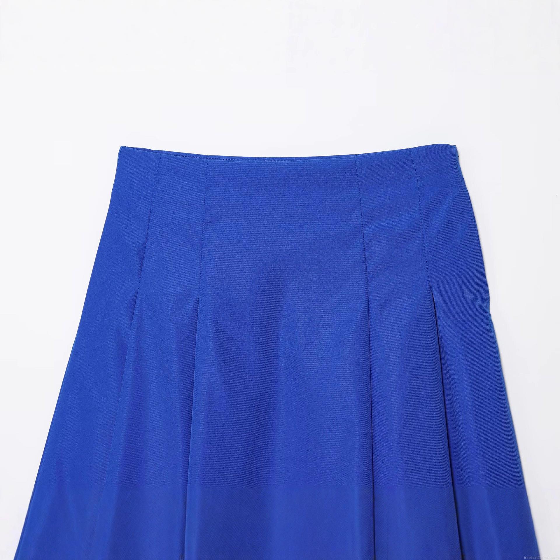 • Women's High Waist A-Line Midi Skirt Solid Royal Blue Polyester Pleated Skirt Casual Street Style Versatile Bottoms for Women