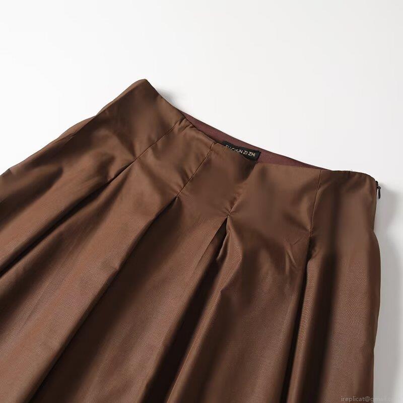 • Women's High Waist A-Line Pleated Midi Skirt 85% Polyester 15% Cotton Solid Color Elegant Casual Long Skirt For Daily Office Streetwear Lady