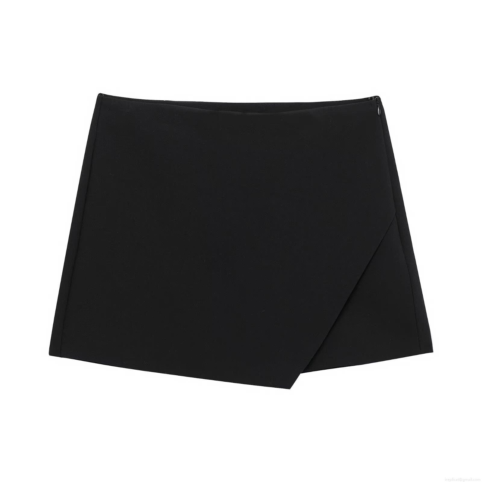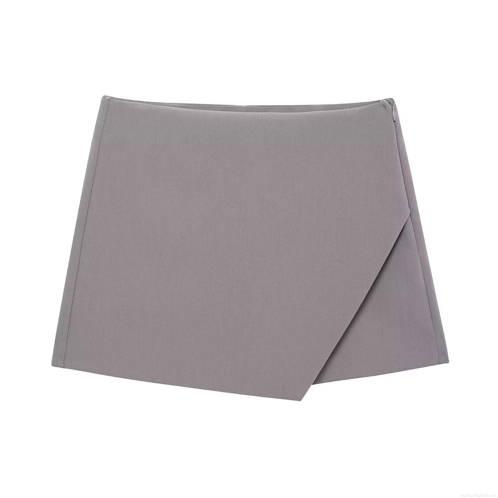 • Women's High Waist Asymmetrical Skort Mini Skirt Shorts Elegant Commuting Solid Color Polyester Bottoms with Side Zipper