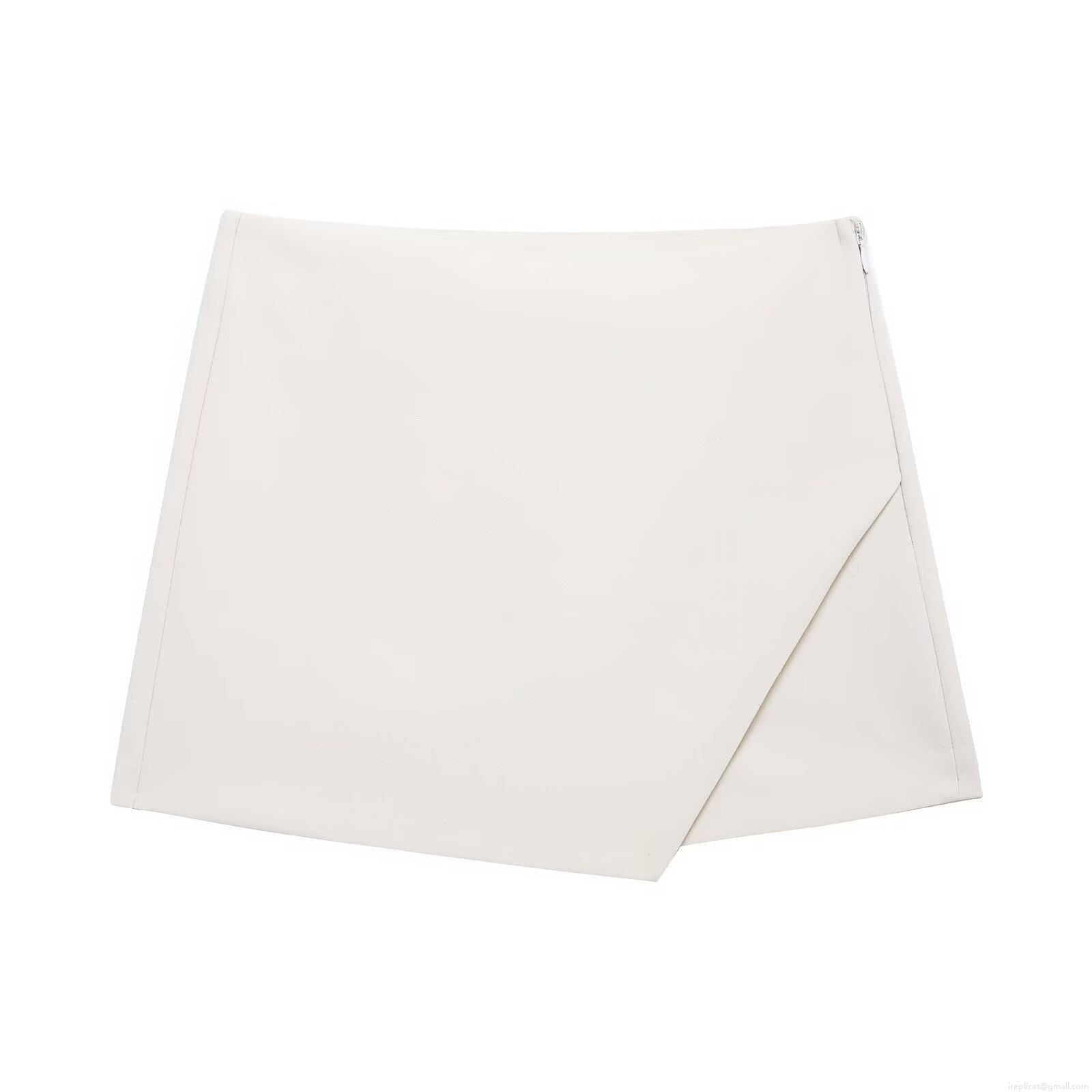 Women's High Waist Asymmetrical Skort Mini Skirt Shorts Elegant Commuting Solid Color Polyester Bottoms with Side Zipper