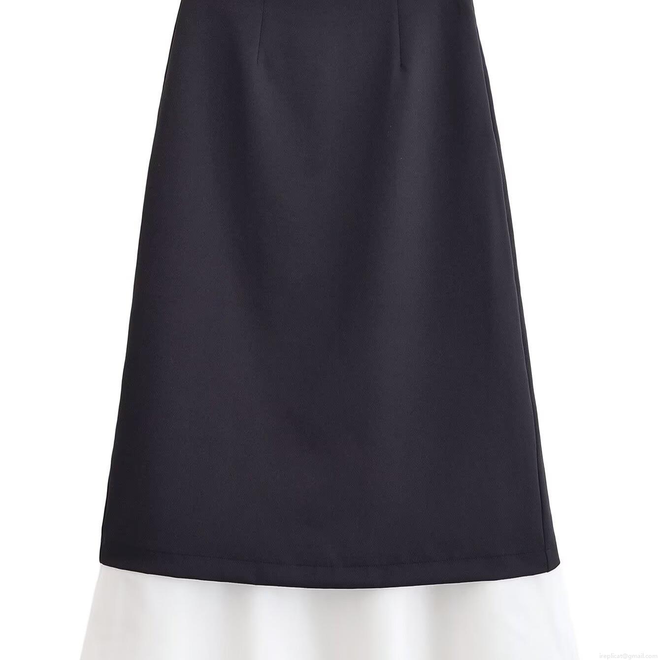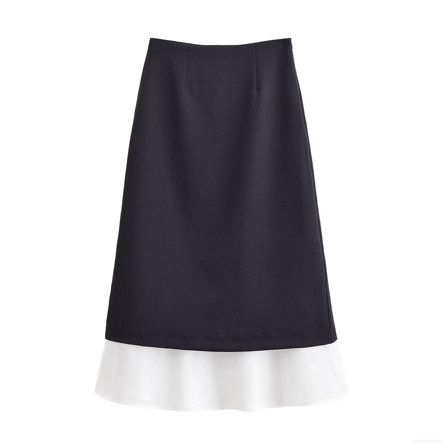 Women's High Waist Black White Spliced Long Skirt Contrast Color Layered Straight A-Line Skirt Fashion Streetwear Polyester Casual Skirts For Women