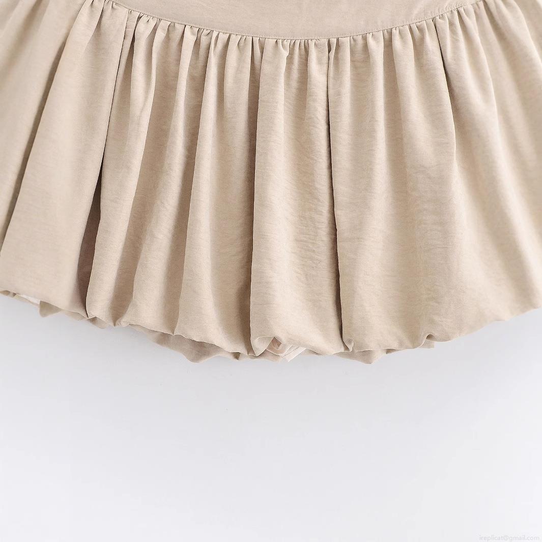 • Women's High Waist Bubble Mini Skirt 100% Polyester Solid Color Pleated Ruffle Hem Casual Party Sexy Streetwear Short Skirt