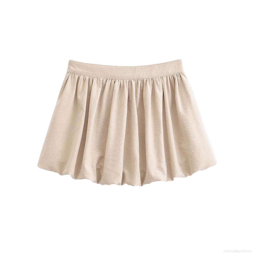 Solid Color, Pleats, Gathering, Bubble Skirt