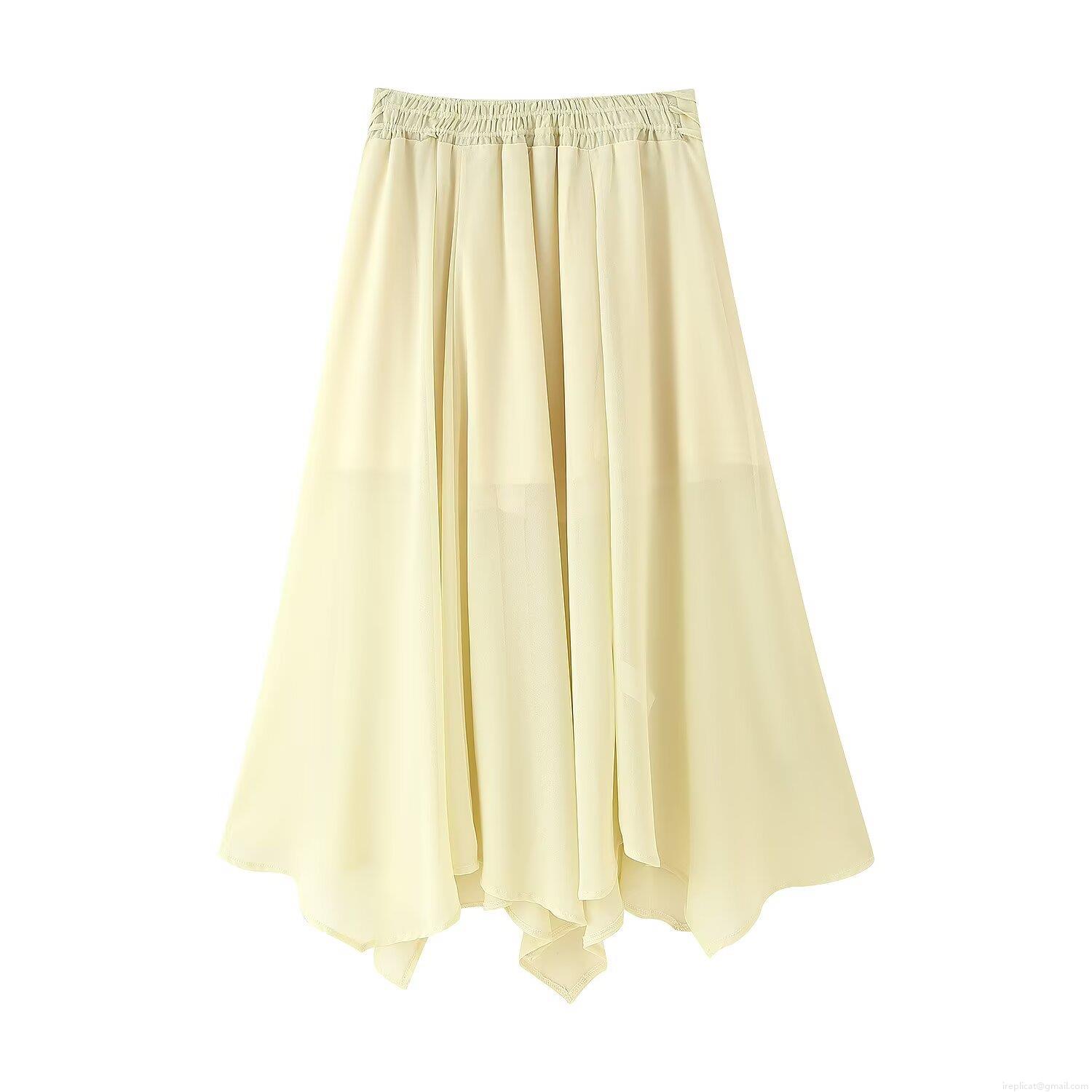• Women's High Waist Chiffon Maxi Skirt Elastic Waist Drawstring Tiered Ruffle Hem Large Swing Fashion A-Line Long Skirt For Streetwear Vacation