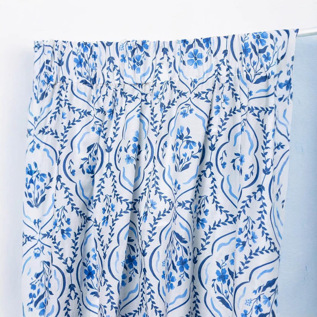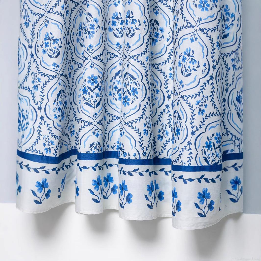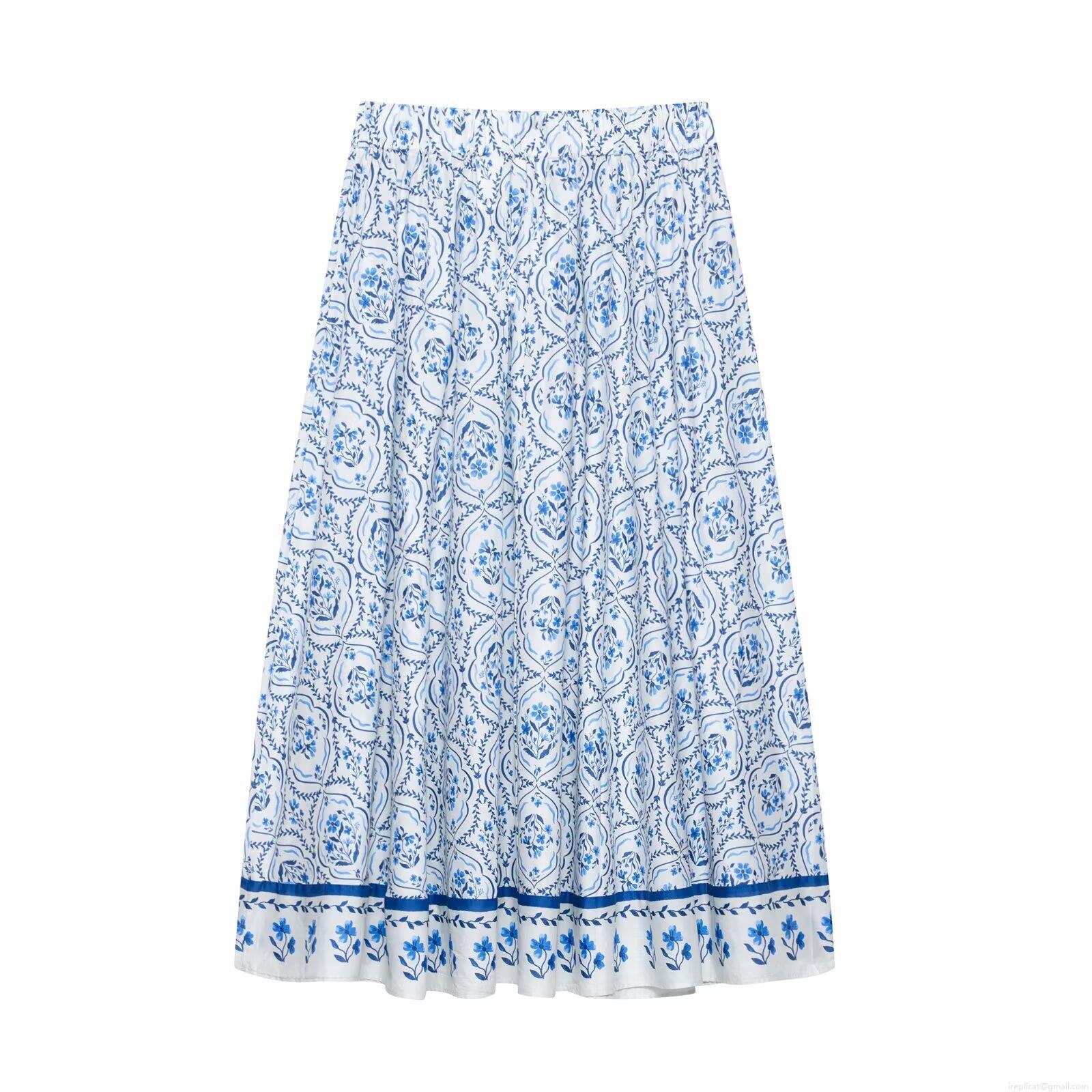 Plants And Flowers, Printing, Elastic Waistband, Blue And White Porcelain Printed, A-shaped Arrangement
