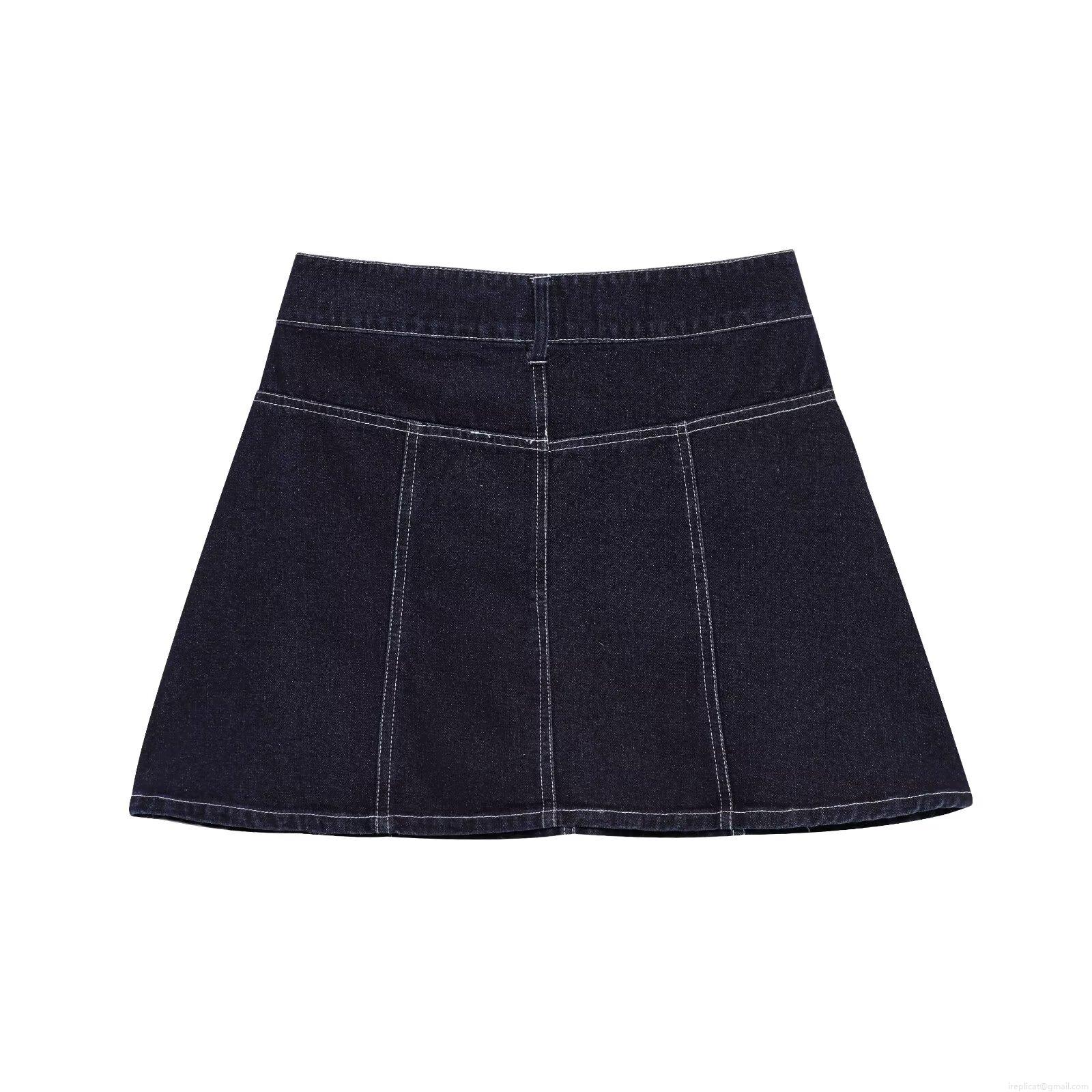 • Women's High Waist Denim Mini Skirt Sexy A-Line Bodycon Skirt With Contrast Stitching And Front Buttons For Casual Party Streetwear Women's Clothing