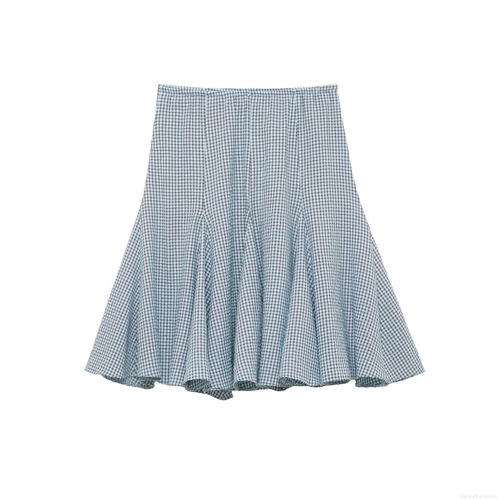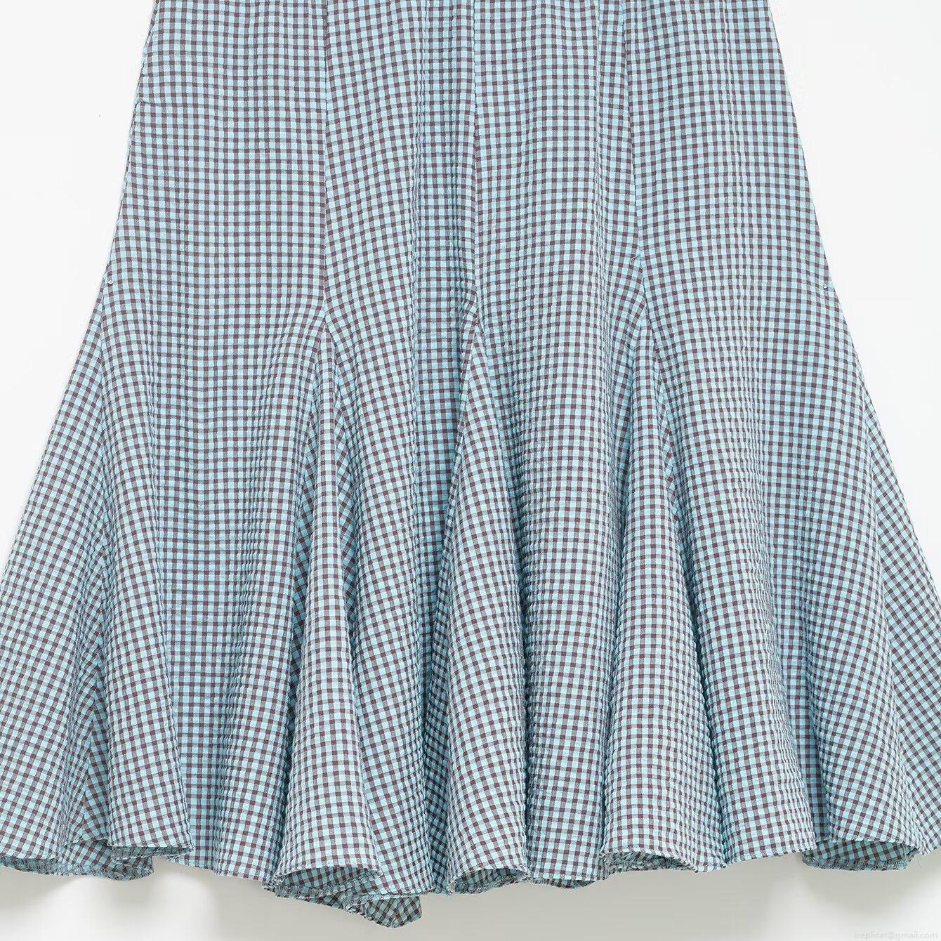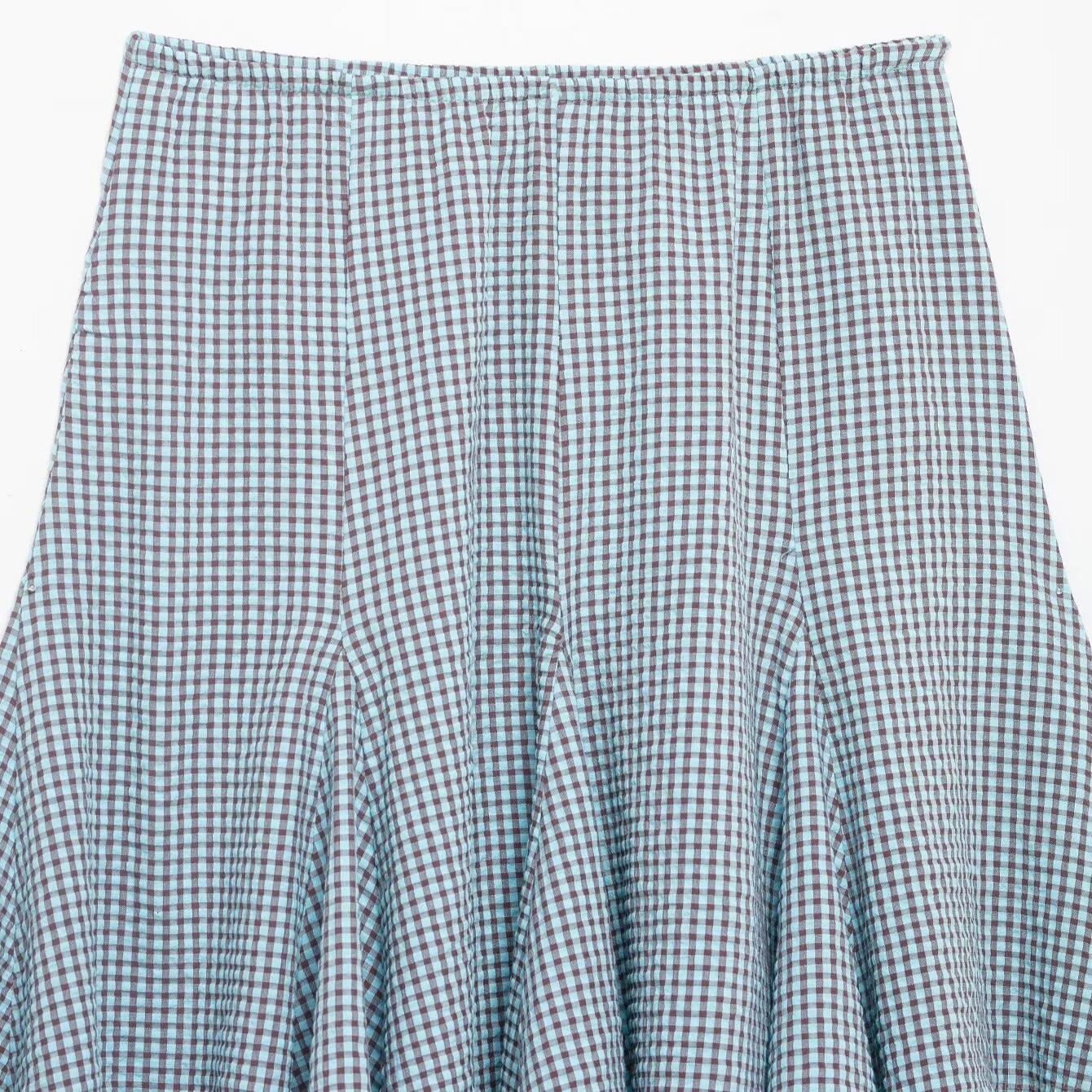 • Women's High Waist Gingham Plaid Midi Skirt Elastic Waist A-Line Flared Seersucker Skirt Casual Streetwear Summer Skirt For Women