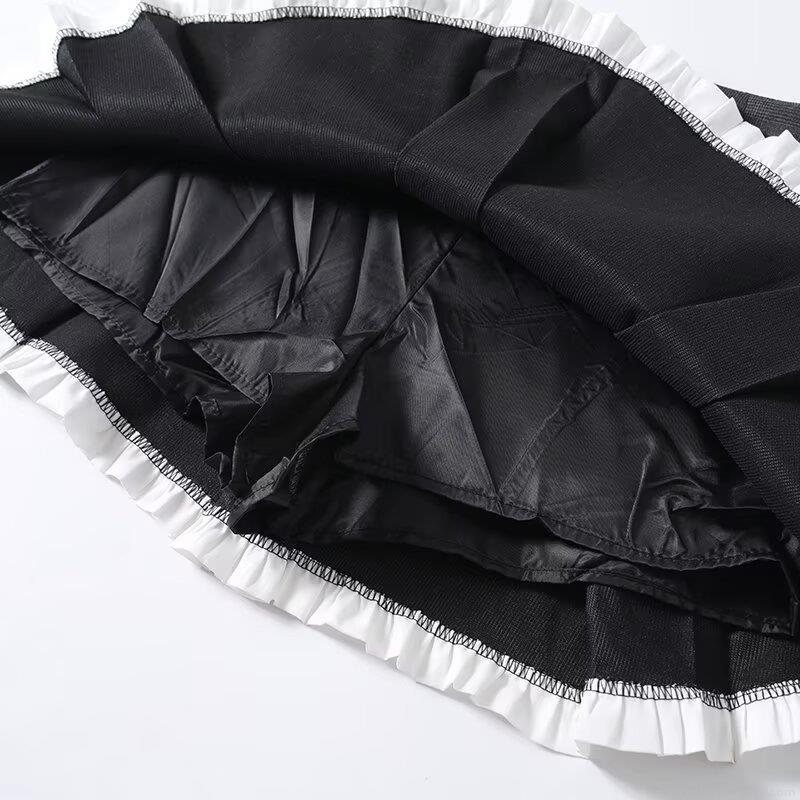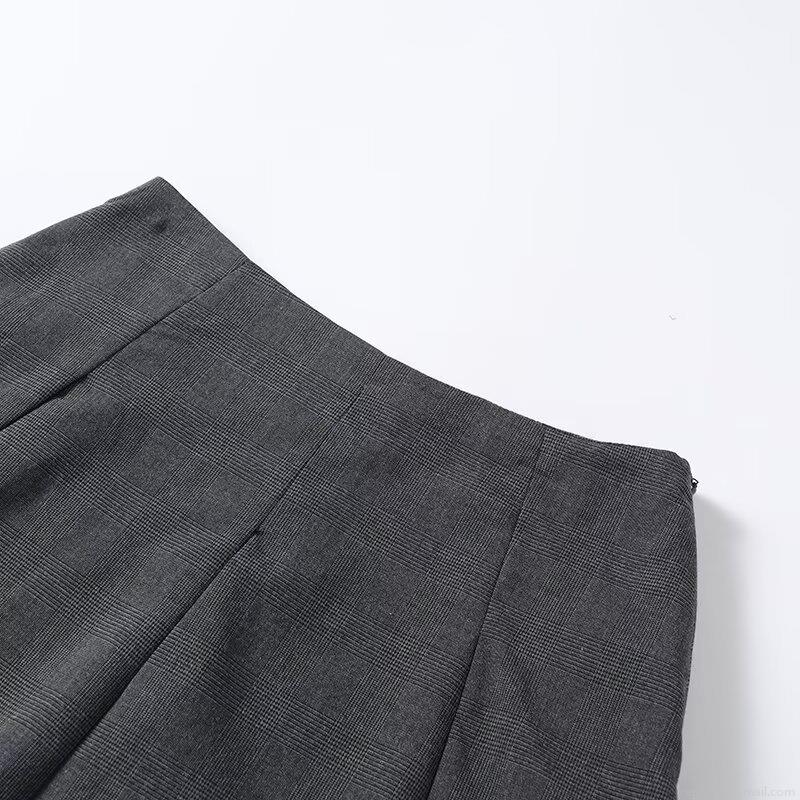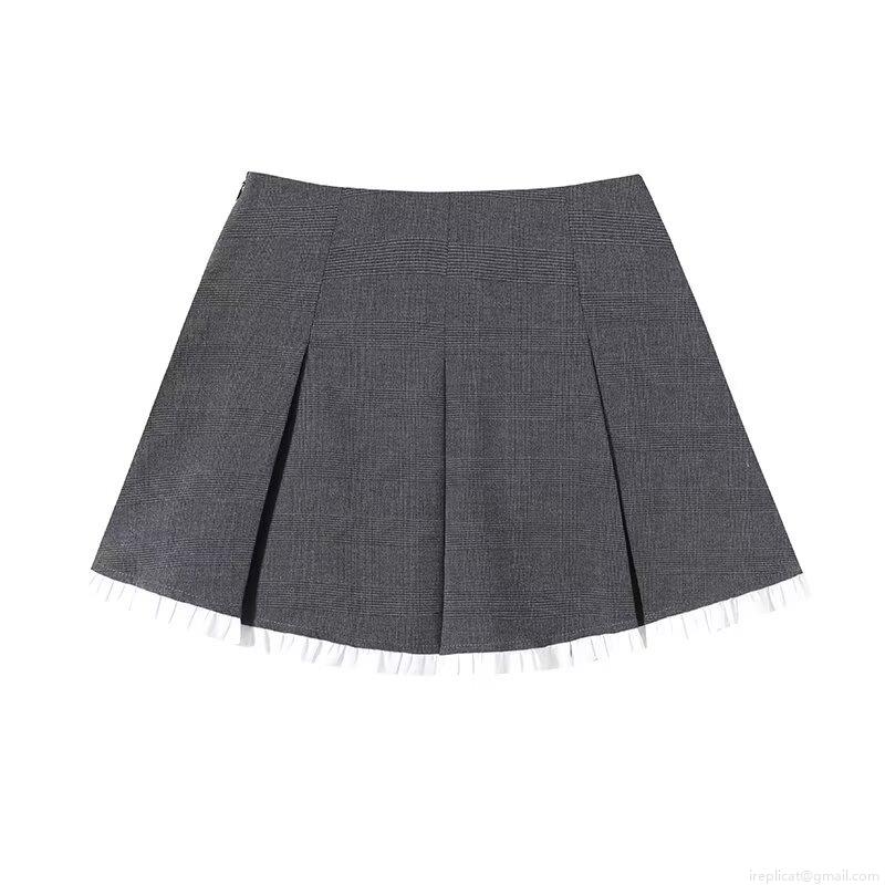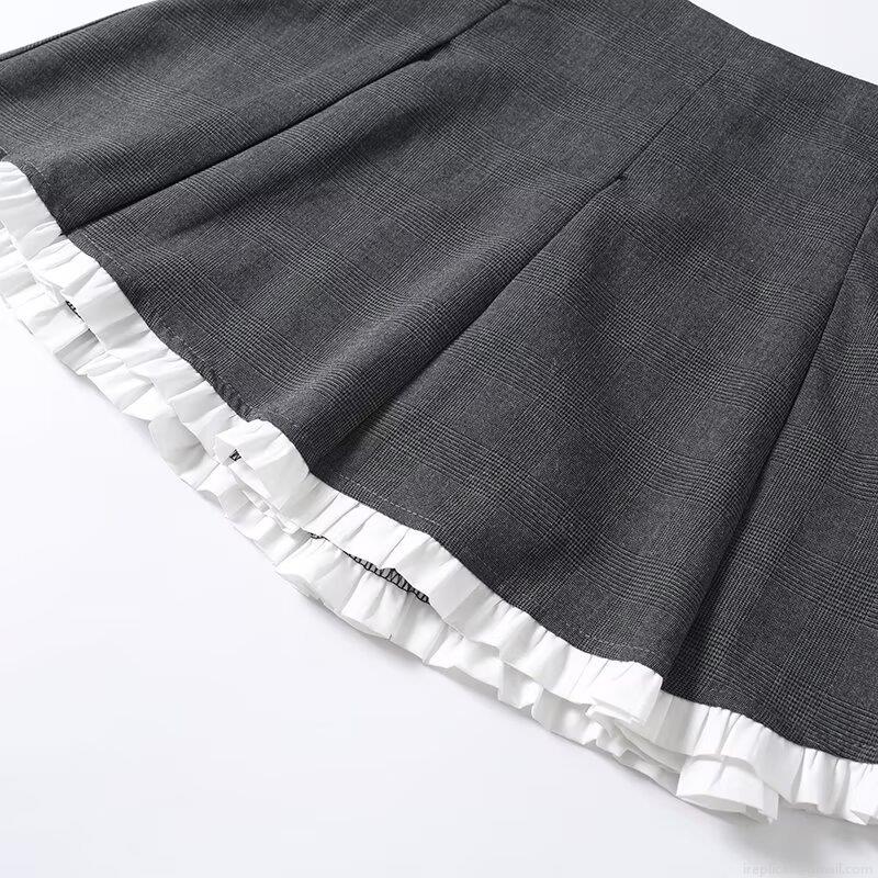 • Women's High Waist Grey Plaid Pleated Mini Skirt With White Ruffle Hem And Built-In Safety Shorts Casual Preppy A-Line Skirt For Ladies